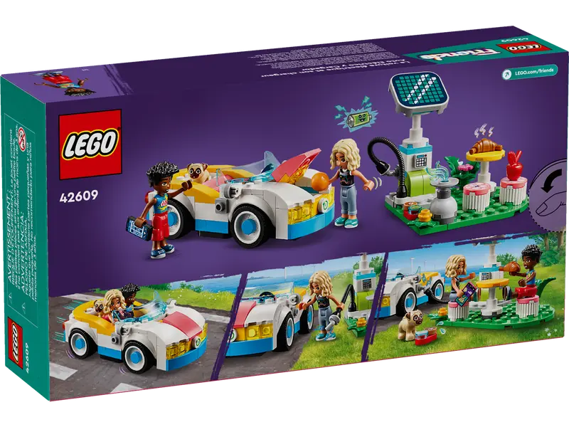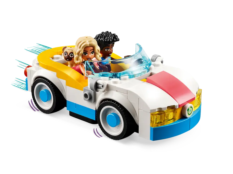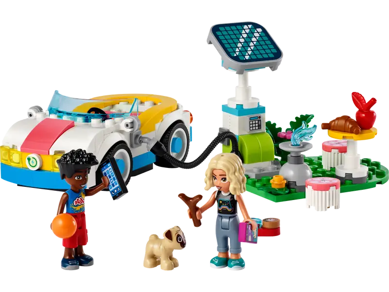 LEGO® Friends Electric Car and Charger building set – This vehicle toy set for girls, boys and kids aged 6+ comes with 2 mini-dolls, a dog figure, a car and a pretend solar-powered charging point