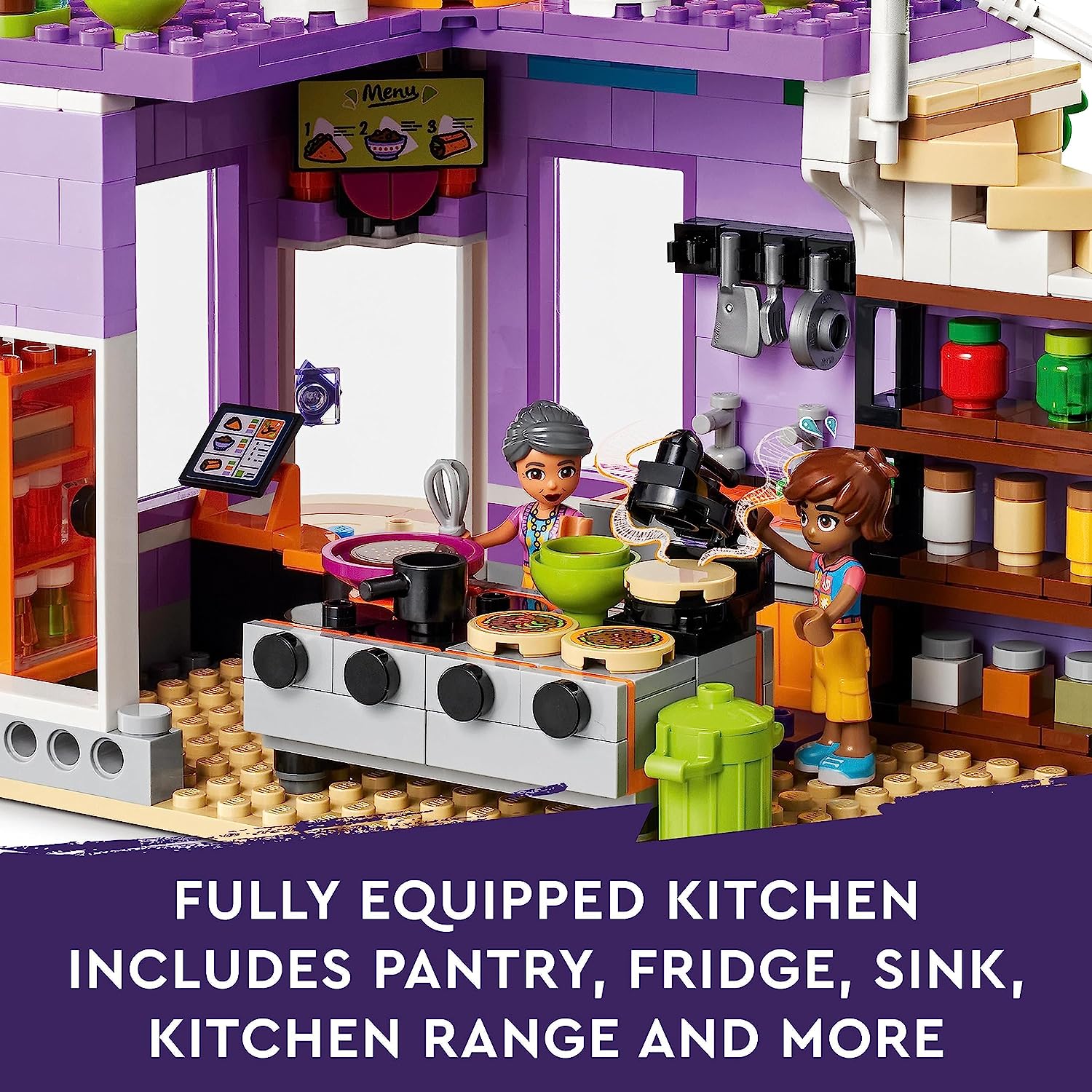 Little chefs aged 8+ can dream up delicious adventures at the LEGO Friends Heartlake City Community Kitchen (41747). This building toy for kids shows the relationship between Leo, his sister Alba and their grandmother, who runs the kitchen. Leo loves to learn new cooking techniques and the set comes with lots of ingredients and accessories so kids can explore new things too. There’s a pantry, toy refrigerator, sink and a kitchen range with pans and a tortilla press. Outside, there’s seating and a roof terrace. This set combines with the LEGO Friends Heartlake City Community Center 41748 (sold separately) for even more community-based fun. Makes a great fits for the little chef in your life who loves pretend play. Kids can enjoy an easy and intuitive building adventure with the LEGO Builder app. Here they can zoom in and rotate models in 3D, save sets and track their progress. Welcome to the next generation of Heartlake City where kids can make friends, discover exciting locations and act out real-life adventures in the LEGO Friends universe. Contains 695 pieces.
