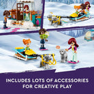 Kids ages 8 and up can create endless stories with this fun-filled LEGO Friends Igloo Holiday Adventure (41760) winter themed toy. First, kids can build the toy igloo glamping dome and icy scene. Then they can role-play different stories as the 3 mini dolls Paisley, her little sister Ella and friend Aliya relax in the mountain landscape. It’s the perfect opportunity for hardworking Aliya and shy Paisley to unwind together as they watch Ella play with the 2 sled dogs. The dome opens so kids can explore the cozy interior. There’s also a seating area, fairy lights, fire pit and steam pool to explore for more snowy role-play stories. This winter themed set makes a great gift for 8-10 year old kids. The LEGO Builder app is for kids to discover an easy and intuitive building adventure. Here they can zoom in and rotate models in 3D, save sets and track their progress. Kids can make friends, discover exciting locations and act out real-life adventures in the LEGO Friends universe. Contains 491 pieces.