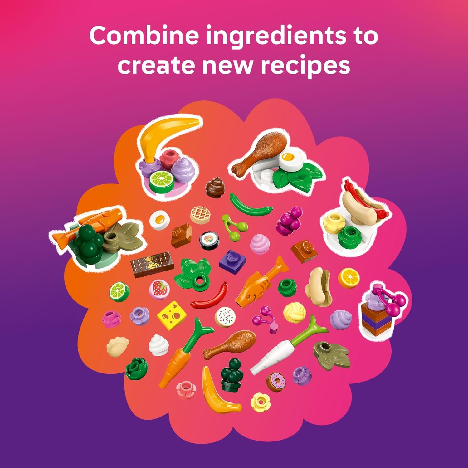 Kids can have fun in the kitchen and use their creativity to cook up something special with the LEGO Friends Restaurant and Cooking School (42655) playset for boys and girls ages 8 and up. Little ones can play out different scenarios as chefs, restaurant owners, or instructors and students in this 2-story building featuring 4 minidolls, a cookery school kitchen, an outdoor dining area and even a kitchen cat. Little chefs in the making can help Leo and Chef Marta as they develop new recipes for customers to try. Comes with ingredient accessories for kids to make and combine as they create their own dishes, plus a cooking station with kitchen accessories. When the doors open, Churro the cat wears a chef’s hat and greets customers inside the restaurant as Leo takes orders and serves dinner. Other details in this toy building set include the restaurant’s cleanup room, a customer restroom and a scooter for making deliveries. Contains 896 pieces.