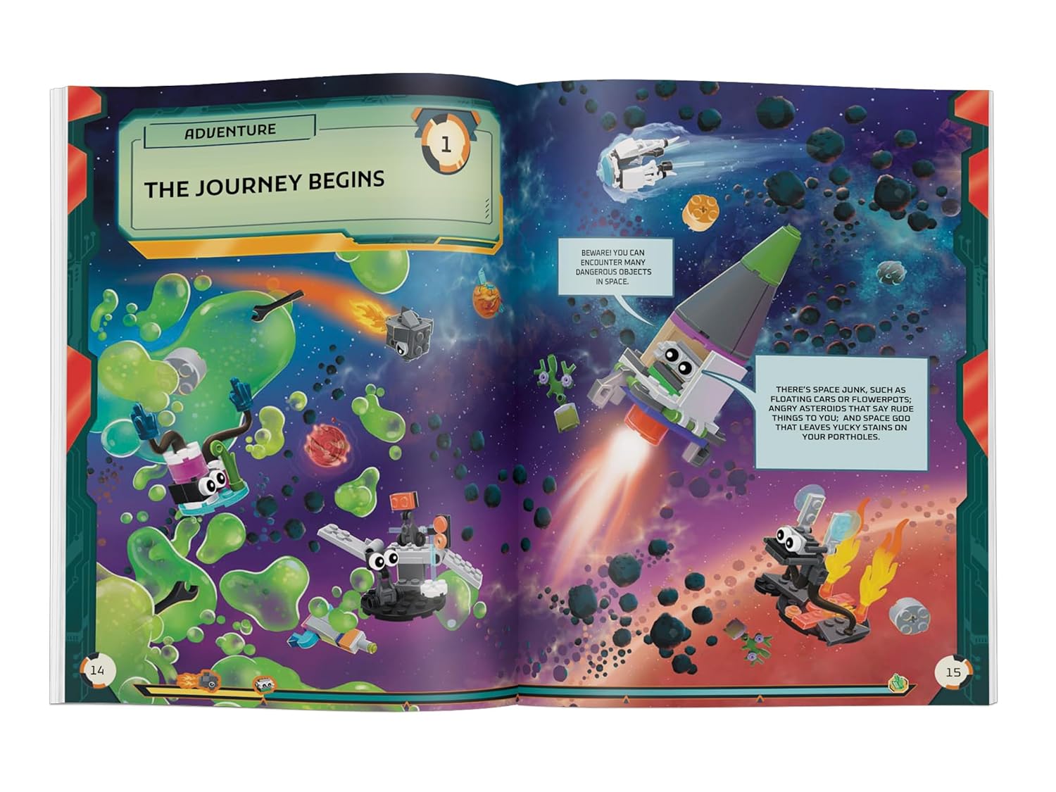 Join space explorer Diod-E on a brand-new solo mission to rescue tiny Aster the Sprout and return her to her alien home. Read the exciting rescue mission in the 64-page Adventure Book. As you read, help Diod-E navigate the universe by creating incredible vehicles, gadgets, and creatures using build inspiration ideas, LEGO® bricks, and your imagination. Complete build challenges to advance the plot and achieve brick bonuses when you complete a mission stage. Encourages creative problem solving and provides multiple opportunities for personalization along with building and rebuilding options.