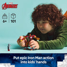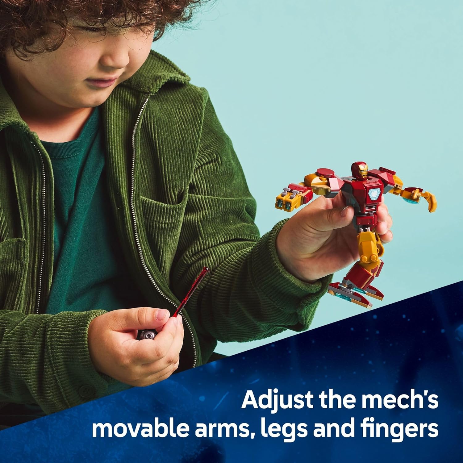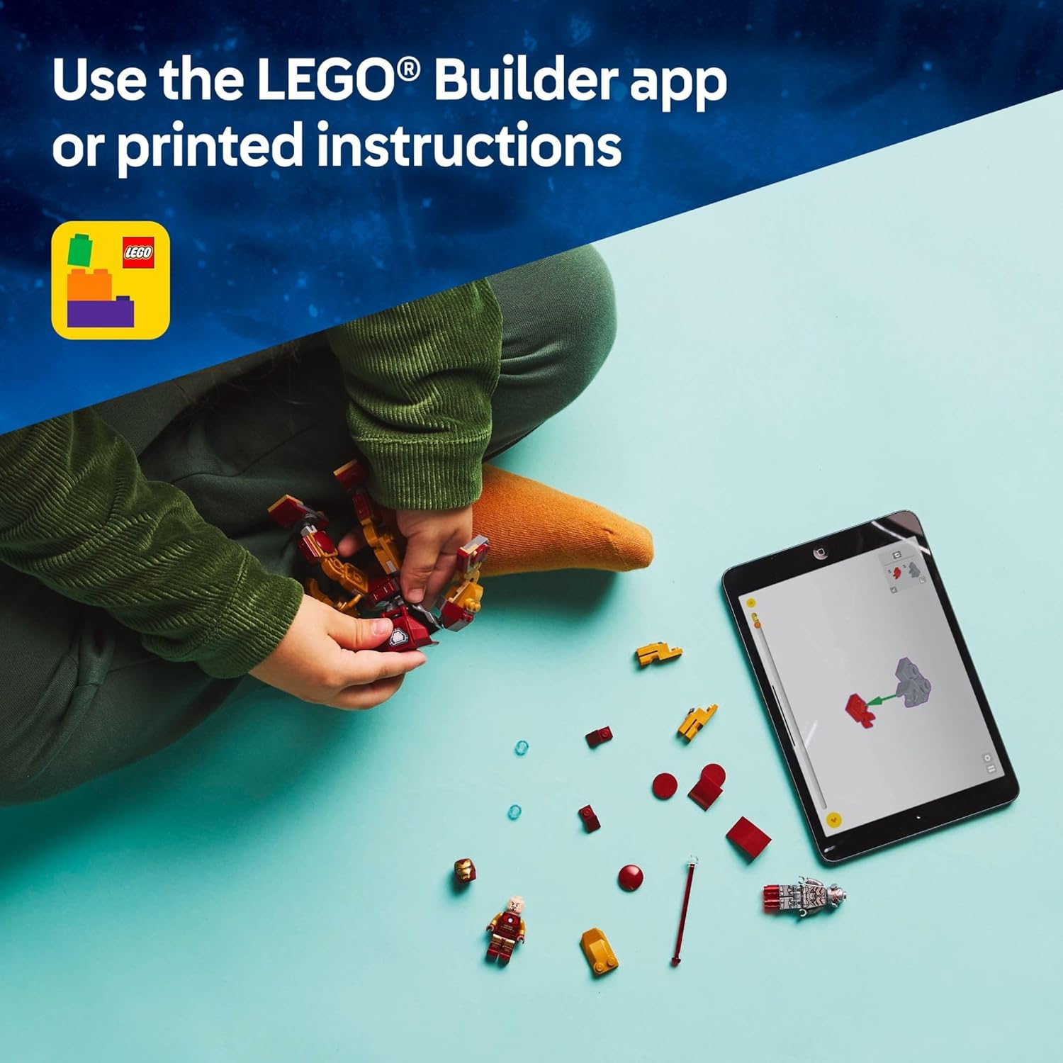 LEGO Marvel Iron Man Mech vs. Ultron (76307) is an action-packed, buildable playset for kids ages 6 and up who enjoy Super Heroes and hands-on construction adventure toys. This LEGO Marvel mech playset includes 2 minifigures: Iron Man with a flip-open helmet and reversable head showing alternative expressions, and Ultron holding a laser beam element. Boys and girls will be captivated constructing a buildable mech with movable arms, legs and fingers and a stud-shooter at the end of its right arm. The torso opens to reveal a cockpit where the Iron Man action figure can sit. For added digital fun, builders can zoom in, rotate models in 3D and track their progress using the fun, intuitive LEGO Builder app. Contains 101 pieces.