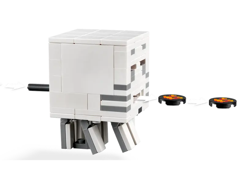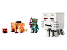 Minecraft® battle scene and action figures – Includes an Orc Warrior figure, a Minecraft ghast that shoots discs from its mouth, a hoglin figure, with its butting head, and 2 magma cubes