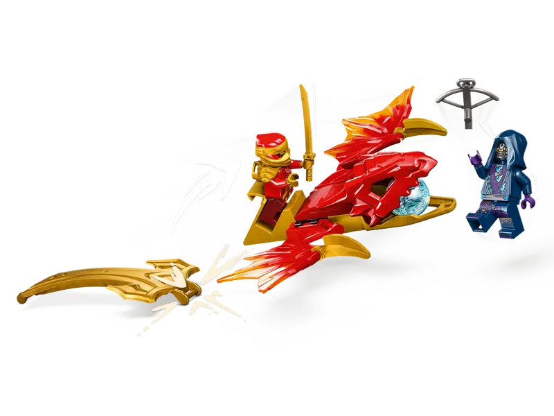 Boys and girls aged 6 and up can recreate adventures from season 2 of the NINJAGO® Dragons Rising TV show with Kai’s Rising Dragon Strike (71801) LEGO® building set. Kids will be excited to build the first-ever LEGO NINJAGO dragon action toy before they slam down the dragon’s golden tail and watch as it bursts into action. This playset comes with 2 minifigures: Rising Dragon Kai, who comes with a katana sword accessory and can ride the buildable dragon action figure, and a Wolf Mask Guard witha crossbow accessory. Kids can stage battles between these LEGO NINJAGO characters to win a blue dragon power element from the dragon action figure toy’s posable mouth. The rest of the LEGO NINJAGO range of buildable ninja toys for kids includes mechs, vehicles and temples so fans can role-play stories with their heroes (sets sold separately). Each fantasy toy can be created with the LEGO Builder app, which guides you and your child on an easy and intuitive building adventure. Action-packed dragon toy for kids – Boys and girls aged 6 and up can play out battles from season 2 of the NINJAGO® Dragons Rising TV show with Kai’s Rising Dragon Strike buildable dragon Fantasy action toy – Kids can place Rising Dragon Kai onthe back of the dragon action-figure toy, slam down its golden tail and launch them both forward 2 LEGO® NINJAGO® characters – This ninja playset features a Kai minifigure armed with a katana sword accessory and an evil Wolf Mask Guard with a crossbow accessory Dragon power element – LEGO® toy includes a blue dragon power element that the dragon can hold in its mouth Kids’ party gift – This ninja toy provides a creative build-and-play experience and makes a fun special-occasion gift or unexpected treat Bigger ninja adventures – Look out for more NINJAGO® action toys (sets sold separately) to stage races between them A universe of ninja toys for kids – LEGO® NINJAGO® sets include mechs, vehicles and temples, and let kids escape into a fantasy world of adventure with their ninja heroes Measurements – This 24-piece LEGO® building set includes a buildable dragon measuring over 1 in. (2 cm) high, 7 in. (18 cm) long and 7 in. (18 cm) wide
