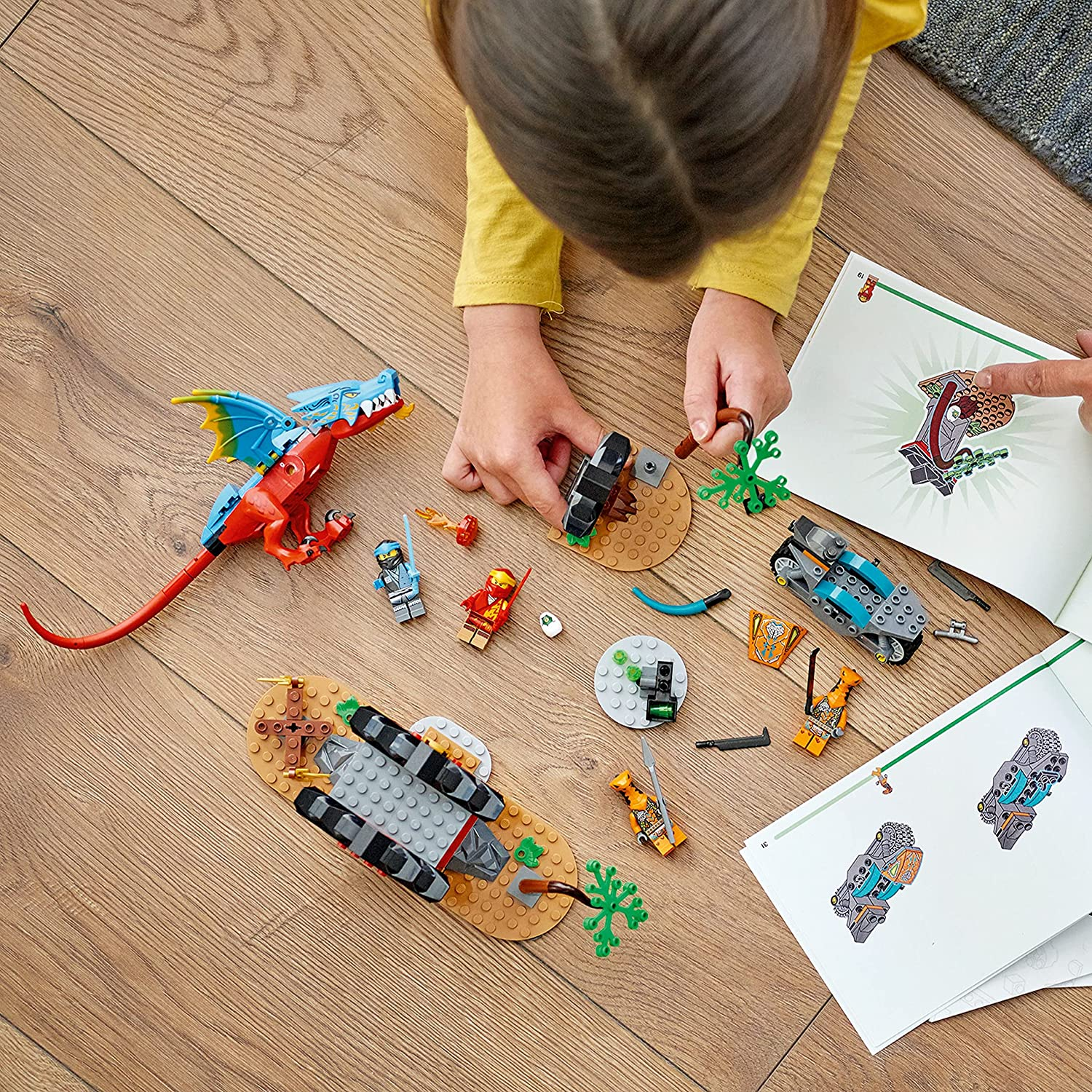 The Ninja Dragon Temple (71759) playset helps kids aged 4+ develop their building skills. It features a posable dragon, 2 ninja temples, 2 posable trees, a dragon’s egg and 4 minifigures: ninja Kai and Nya, and baddies Cobra Mechanic and Sneaky Snake. This ninja playset has been specially designed to give kids aged 4 and up a brilliant build-and-play experience. Inside the box, each bag of bricks has a model and a character to build so kids can quickly get the action underway. There is also a Starter Brick to provide a partly constructed base to get kids building the dragon. This playset comes with interactive digital building instructions to make the experience even more fun for little builders. Available in the free LEGO Building Instructions app for use on smartphones and tablets, the zoom and rotate tools let young kids visualize the model as they construct it. They can save their progress at any point on the app.
