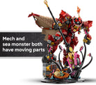 Unleash the legendary Fire Knight with the LEGO NINJAGO Fire Knight Mech (71846) for teens, ages 14 and up. Builders construct an imposing armored warrior that rises from the waves to confront a tentacled sea monster in a scene straight from NINJAGO Legends Monstrosity. Teens can pose the mech and sea monster, place Kai with his magical sword inside the mech's chest chamber, and have the included fisherman witness the battle from his tiny boat. Once completed, this building toy transforms into room decor for avid NINJAGO fans. A cool gift idea for teenager boys and girls who love model building sets and NINJAGO. For an immersive building experience, the LEGO Builder app includes intuitive 3D instructions and more. Contains 996 pieces.