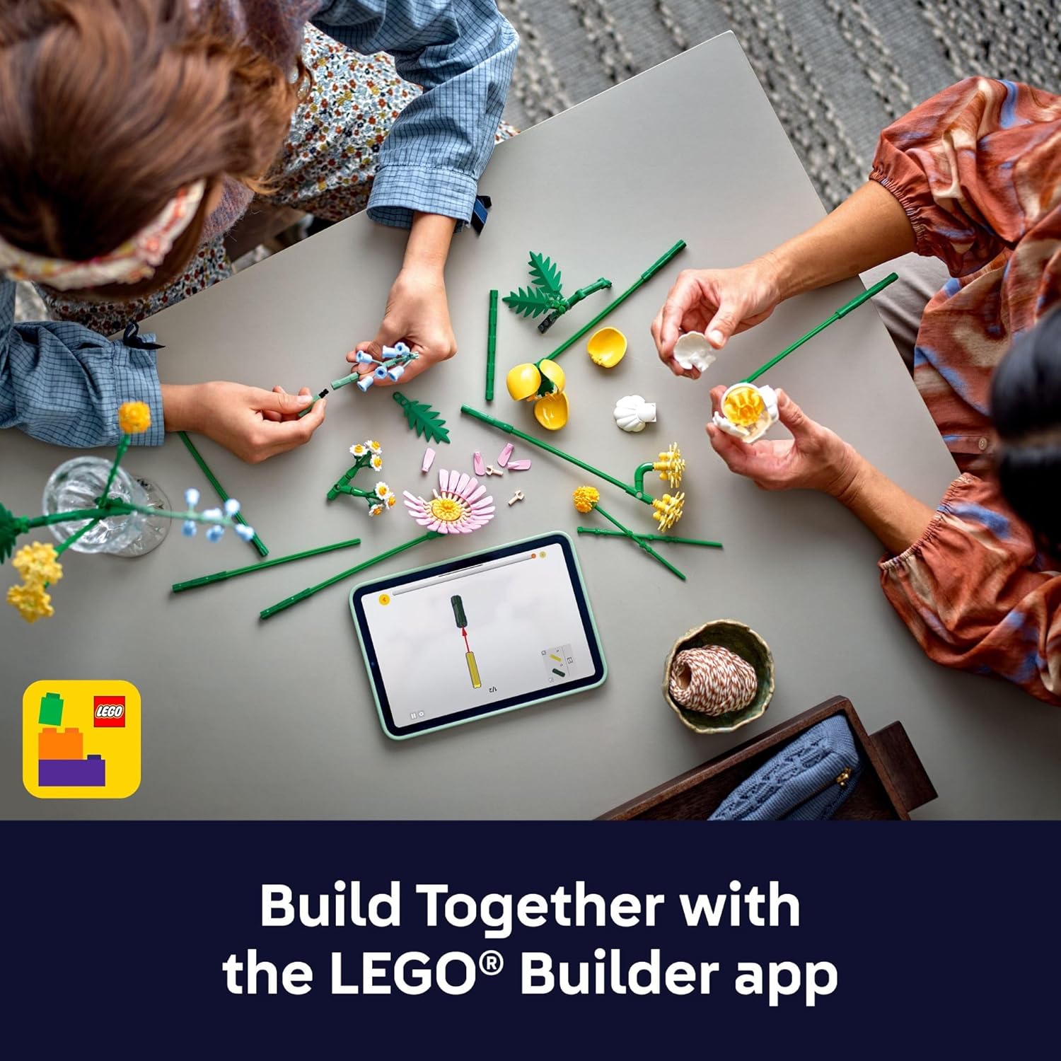 Let kids' creativity bloom with the LEGO Botanicals Petite Sunny Bouquet (10347) building set for girls and boys ages 9 and up. Blooming with mood-boosting pastel shades, realistic details, and adjustable stems, the floral building set is filled with a variety of LEGO spring flowers, including Billy buttons, bluebells, Cleopatra ferns, yellow yarrow, a pink gerbera, a peony and a tulip. Budding florists of all ages will have lots of fun building the bouquet and adjusting the stems to create a one-of-a-kind floral display. Once complete, the faux arrangement becomes a piece of flower decor that can be treasured forever and displayed proudly in bedrooms or as desk decor. Plant joy by giving this nature-inspired building kit as a birthday or anytime gift for girls, boys and adult flower lovers. Build together with friends and family – the LEGO Builder app offers a fun and collaborative experience when building this set. Contains 373 pieces.