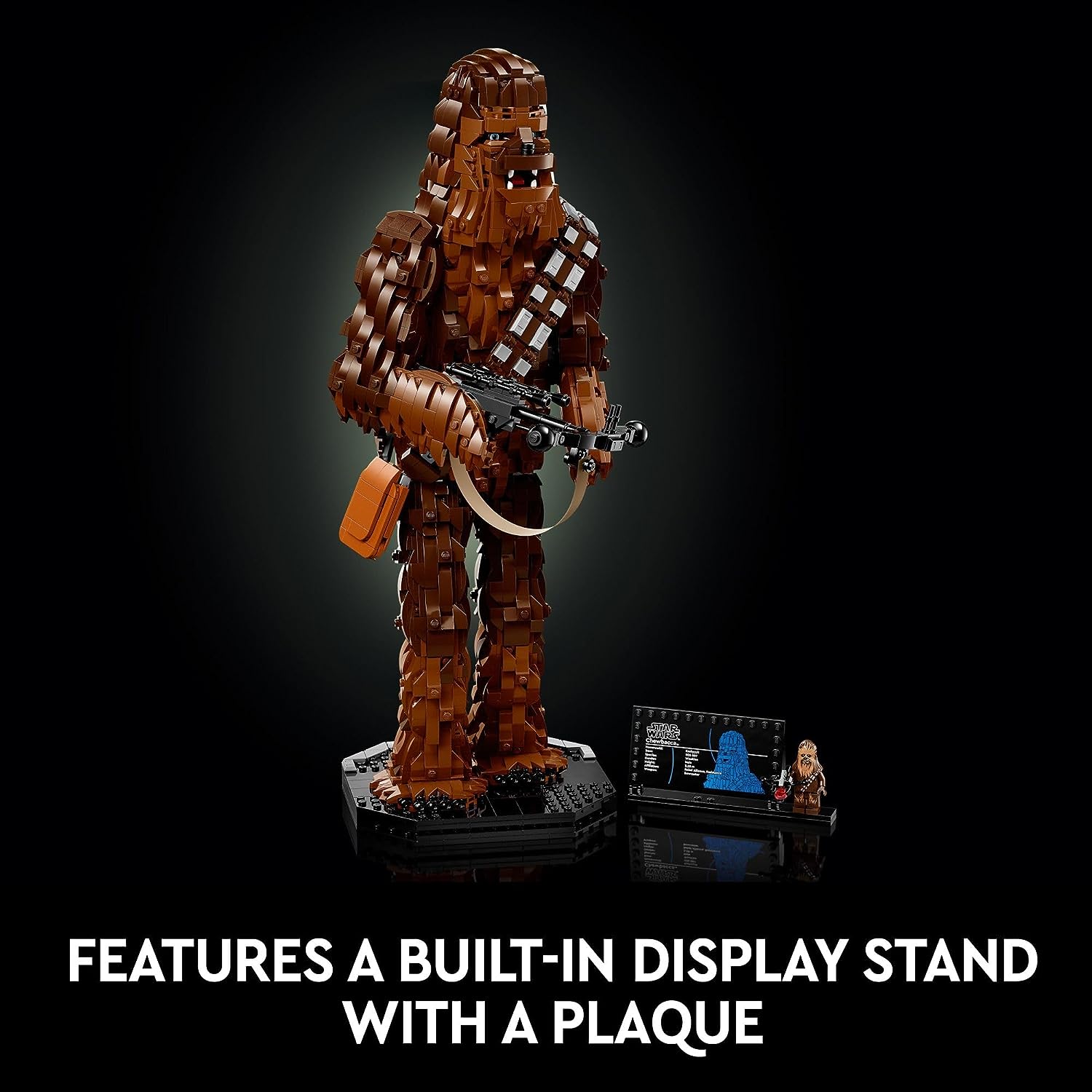 Mark the 40th anniversary of Star Wars: Return of the Jedi by creating a fitting tribute to a legendary Wookiee with this LEGO Star Wars Chewbacca (75371) build and display Star Wars collectible. Channel your creative Force to recreate his hairy body in LEGO style and build his bandolier and giant bowcaster. This impressive buildable LEGO figure stands over 18 in. (46 cm) tall and has a built-in display stand. The Chewbacca collectible also includes a plaque with information about the character, plus a Chewbacca LEGO minifigure with a stud-shooting bowcaster. Find easy-to-follow instructions in the box and on the LEGO Builder app to guide you through every step of the immersive construction process, then display your creation with pride. It began a long time ago, in a galaxy far, far away. Now the story continues in your own home with collectible LEGO Star Wars sets for adults. Explore the range to discover great Star Wars gifts for teens, adults or any Star Wars Original Trilogy fans. Contains 2,319 pieces.