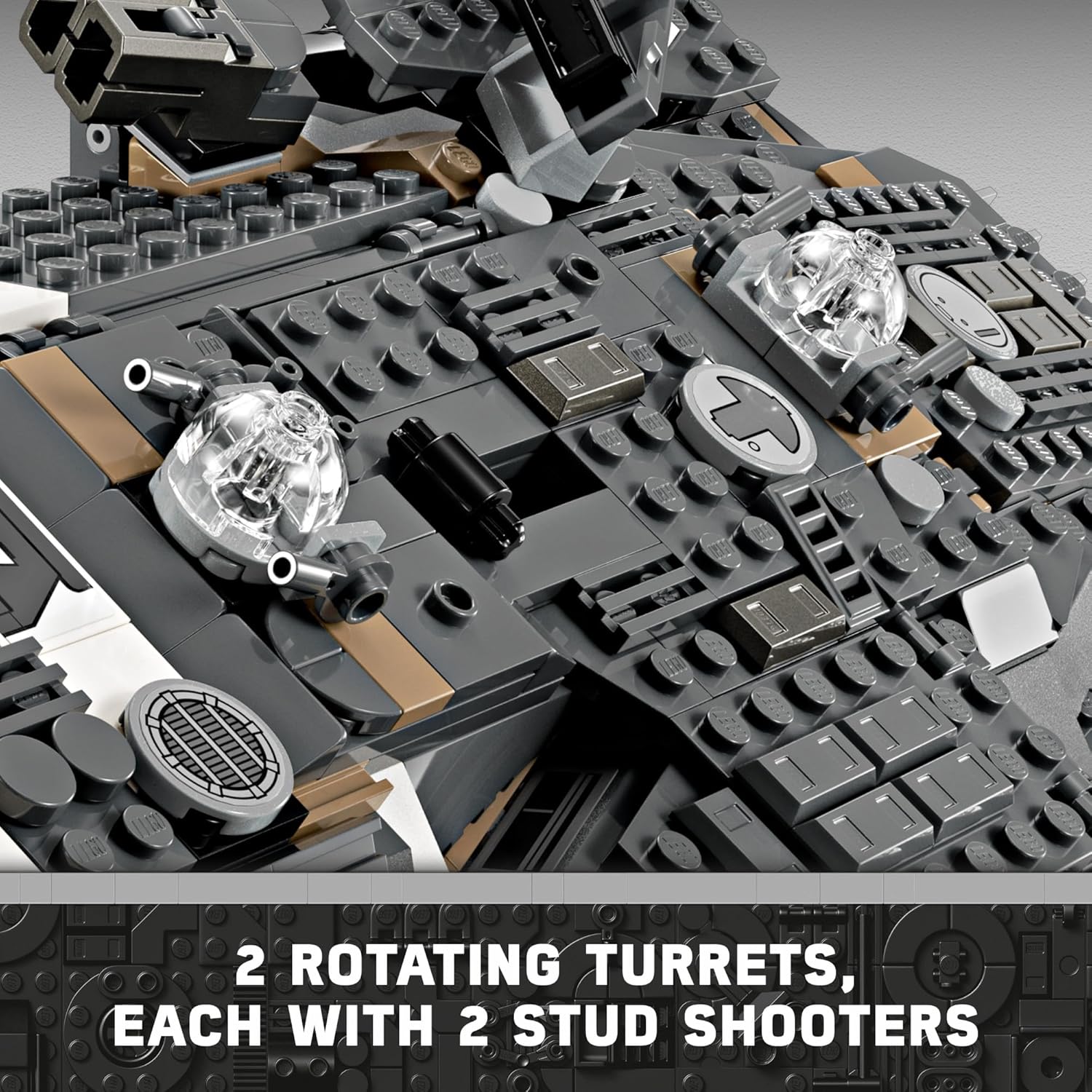 Kids become the heroes in their own Star Wars: Skeleton Crew stories with a detailed LEGO brick recreation of The Onyx Cinder (75374). This collectible LEGO Star Wars toy features rotating engines for landing/takeoff or flight, a grabbing claw and 2 rotating turrets with 2 stud shooters. The buildable starship toy also has seats for all 5 included LEGO Star Wars minifigures (with room for the Jod LEGO minifigure in the cockpit, and the Wim, Fern, KB and Neel minifigures in the passenger compartment), plus storage for the 4 buildable flashlights and other cargo. There is also a kitchen table and a bed, plus accessory elements including fruit and a walkie-talkie to inspire creative play. A top LEGO Star Wars gift idea for fans and collectors of Star Wars memorabilia ages 10 and up, this vehicle toy building set comes with step-by-step instructions. Be sure to also check out the LEGO Builder app for digital viewing tools like zoom and rotate to add to the creative experience. Contains 1,325 pieces.