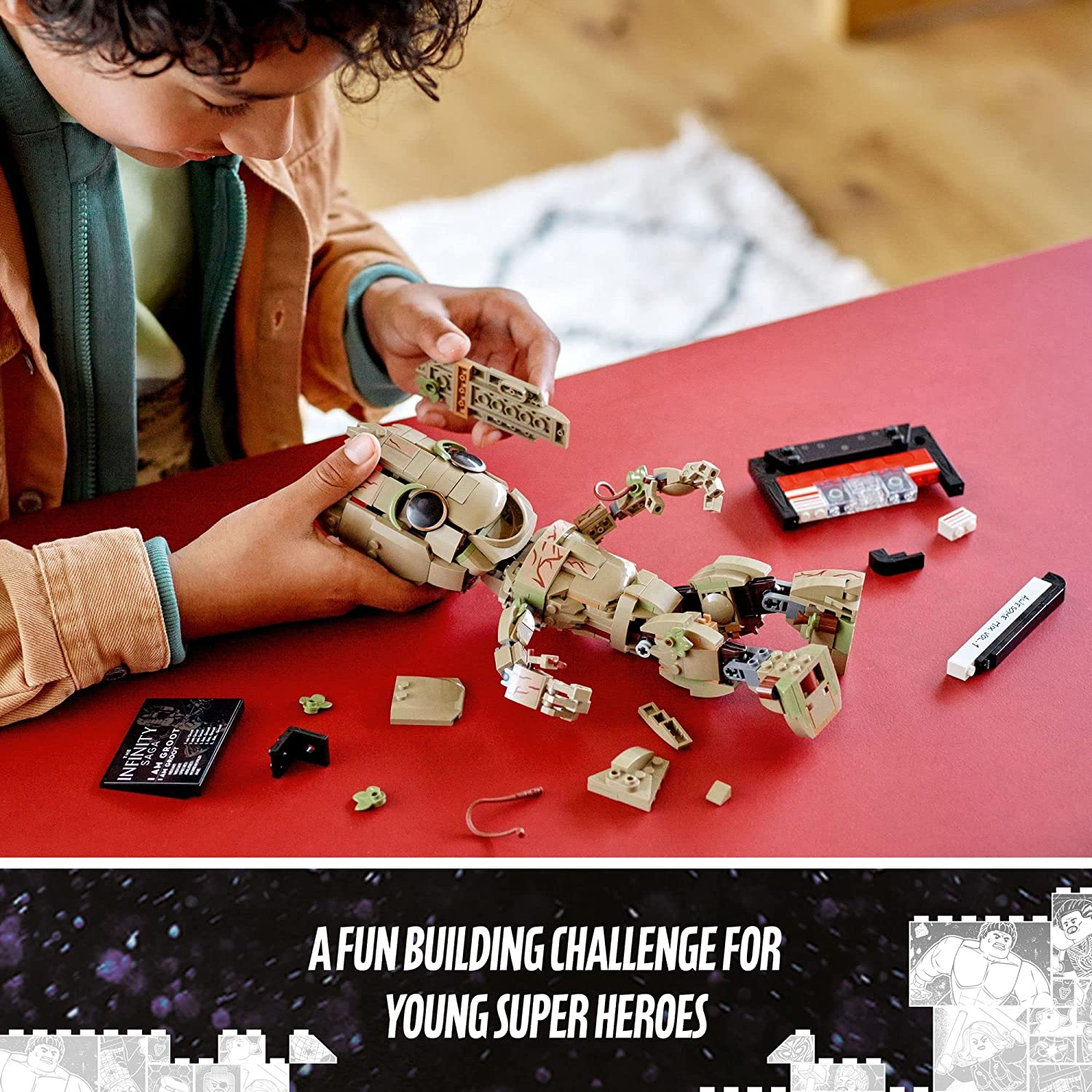 Put a movable model of Baby Groot from the Marvel Cinematic Universe into the hands of kids aged 10 and up with LEGO Marvel I am Groot (76217). Play-and-display Groot Every fan of Marvel Studios’ Guardians of the Galaxy Vol. 2 will know the famous scene where Baby Groot dances. Now kids can recreate this scene and others with this detailed, movable recreation of the lovable and mischievous toddler. The buildable model is easy to position and pose, and there’s even a pretend cassette tape included for make-believe music! In addition, the free LEGO Building Instructions app lets kids view, zoom and rotate the model as they build, providing an amazing sense of immersion and interaction during the construction process.