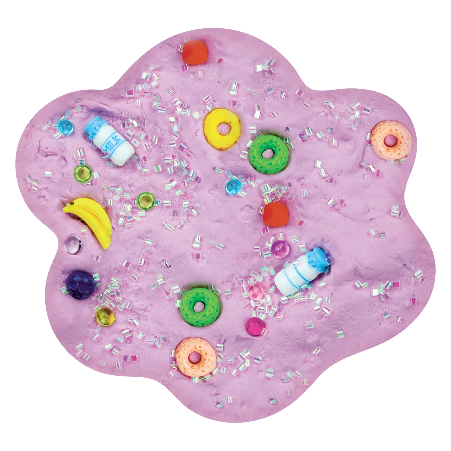What time is it? It's Cereal O'Clock, of course! Get ready for a bowl full of fun with this smooth, fuit cereal scented, purple butter slime. Crazy Aaron's® Cereal O'Clock Slime Charmers(tm) comes with white bingsu beads for the perfect crunchy texture and cereal-themed charms to mix in. Squish, stretch, and swirl your way to a playful slime adventure that's as fun as your favorite breakfast!