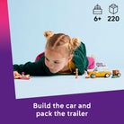 Adventure awaits with the LEGO Friends Friendship Road-Trip Travel Car (42659), an action-packed building toy where young travelers ages 6 and up hit the open road! This fun car toy set lets kids create creative stories for friends Liann and Aliya (and their adorable puppy Aira) Young builders help the girls pack their removable trailer with essential accessories, like a kayak, helmets and skateboards, inline skates, and a clever cooler that transforms into a picnic table. When hunger strikes, kids help the friends enjoy sandwiches, donuts, cookies, cherries, and even a special treat for Aira. Perfect for imaginative play on the go, this toy car building set develops storytelling skills as kids navigate friendship adventures near and far. Makes an exciting birthday gift for girls and boys who love toy cars and making up adventure stories with friends. The LEGO Builder app provides intuitive building guidance with 3D instructions for the perfect construction journey. Contains 220 pieces.