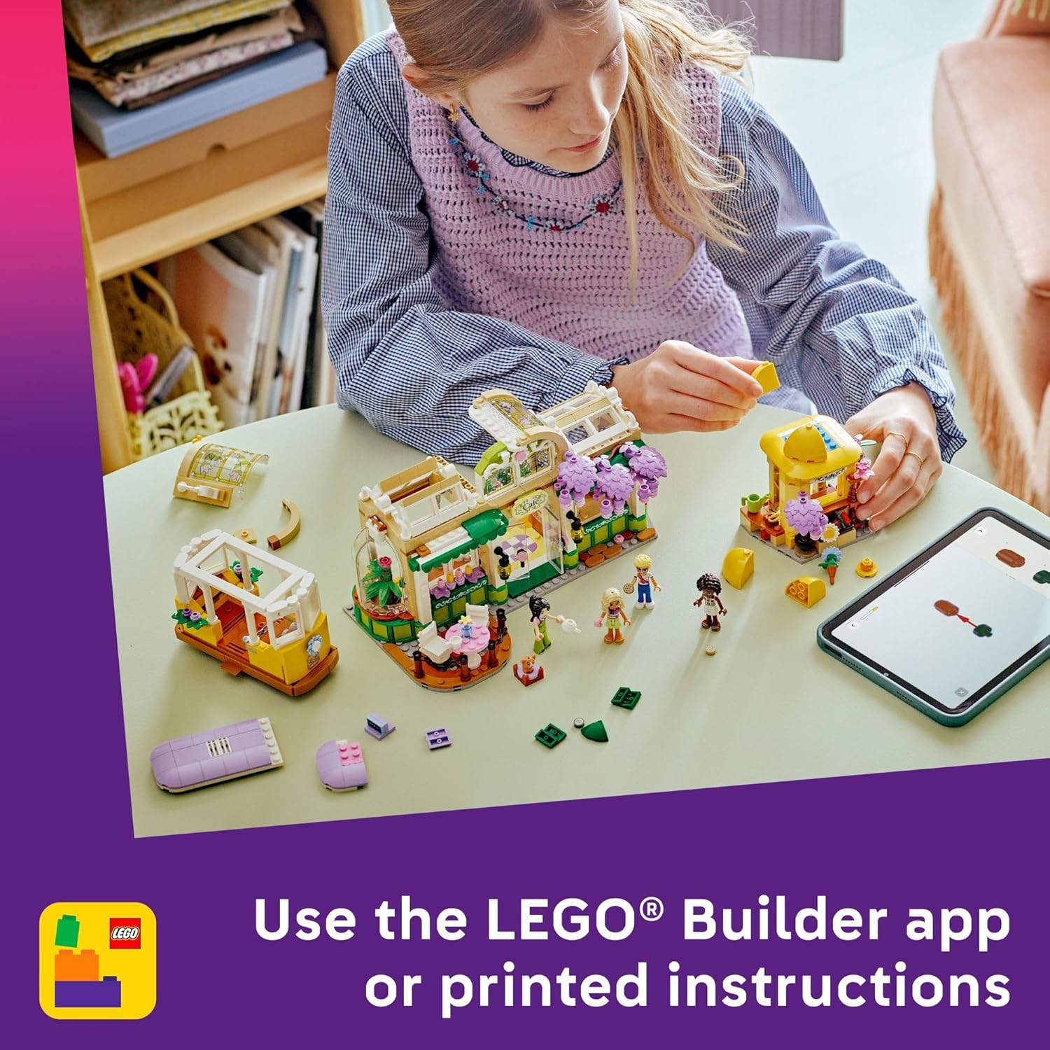 Flowers bloom and friendships grow at the LEGO Friends Plant Café & Flower Shop (42671), a vibrant building toy where young gardeners ages 9 and up create a blossoming community hub! This colorful set invites kids to join Aliya, Olly, Nova, Esma, and Nugget the cat for refreshments and floral fun in a beautifully detailed two-in-one business. Young builders discover delightful features throughout—from the charming streetcar to the café's cozy outdoor seating area and professional kitchen with coffee machine. Next door, the flower shop brims with colorful bouquets and potted plants, providing endless opportunities for creative storytelling and play. Kids develop social skills as they help characters serve pastries and drinks to customers or arrange perfect floral displays for special occasions. When playtime ends, the completed playset makes a beautiful piece of room decor. Makes a wonderful gift for girls and boys who love gardening, building toys, and creative play. Contains 1,138 pieces.