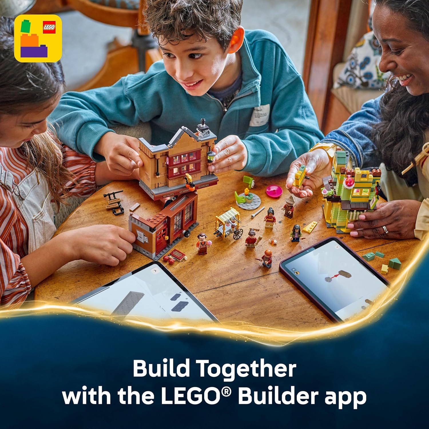 Tour the bustling streets of Diagon Alley with the LEGO Harry Potter Quality Quidditch Supplies & Ice Cream Parlour (76452) for kids, ages 8 years old and up. This building toy lets kids peek inside the wizarding world's most famous shopping district. Young witches and wizards can construct two iconic storefronts—Quality Quidditch Supplies with its magical floating broomstick display and Florean Fortescue's Ice Cream Parlour with indoor and outdoor seating areas. The set includes six detailed minifigures—Florean Fortescue, Katie Bell, Alicia Spinnet, Ron Weasley, Cho Chang, and a shopkeeper—perfect for creating pretend play adventures or plotting Quidditch strategies. As they build, kids will discover authentic touches like a Slytherin Quidditch uniform, a Quaffle, Bludger, Golden Snitch, and trophies inside the sports shop. Both buildings can connect to each other and to other Diagon Alley sets (sold separately) to create an ever-expanding magical shopping street. Perfect as a birthday gift for boys and girls who love Harry Potter toys and collectibles. Contains 795 pieces.
