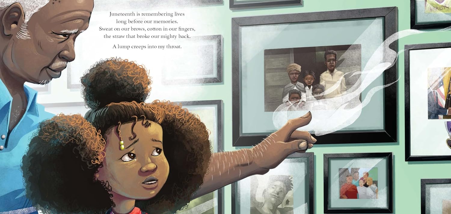 REMEMBERING A LEGACY: Both a story of celebration and a commemoration of freedom, this book honors a past of struggle, resilience, and triumph. It recognizes Juneteenth not just as a holiday but as a cultural legacy. An author’s note also explains the significance of the color red to Juneteenth—its use as a symbol of African American endurance and the ways Black communities weave the color into modern-day celebrations through food and clothing.