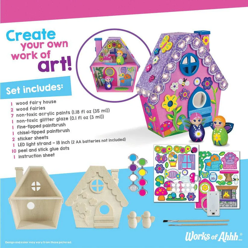 Unleash your creativity and step into a magical world with the WOA Light Up Fairy Doll House Paint Kit! Perfect for kids aged 6 and up, this enchanting kit combines painting, crafting, decorating, and imaginative play. Paint and personalize a quaint fairy house, complete with interior rooms, and furnish it with charming stickers. Add a magical glow with the light-up fairy strand and bring your fairy friends to life for hours of playtime in their magical new home.