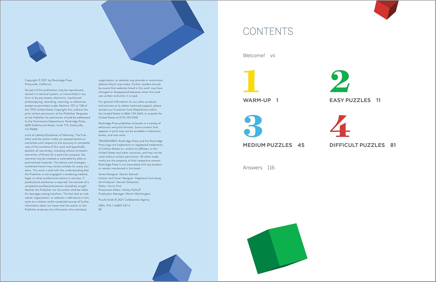Different difficulty levels―Decide how much of a challenge you're in the mood for with sections for Warm-Up, Easy, Medium, and Hard puzzles.