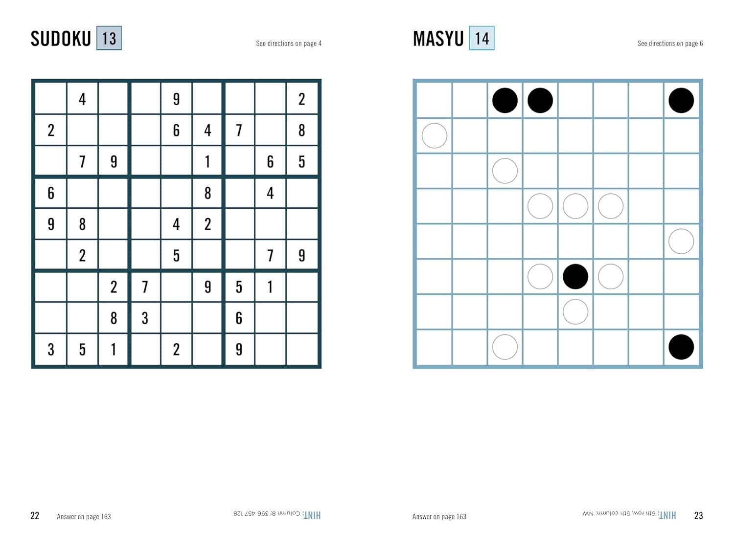 Featuring a variety of puzzle types―including Sudoku, Masyu, Logic Grids, and Nonograms―these easy-to-understand (but tough-to-solve) puzzles will help keep your mind sharp as you remain engaged and entertained for days to come. Brainpower on!