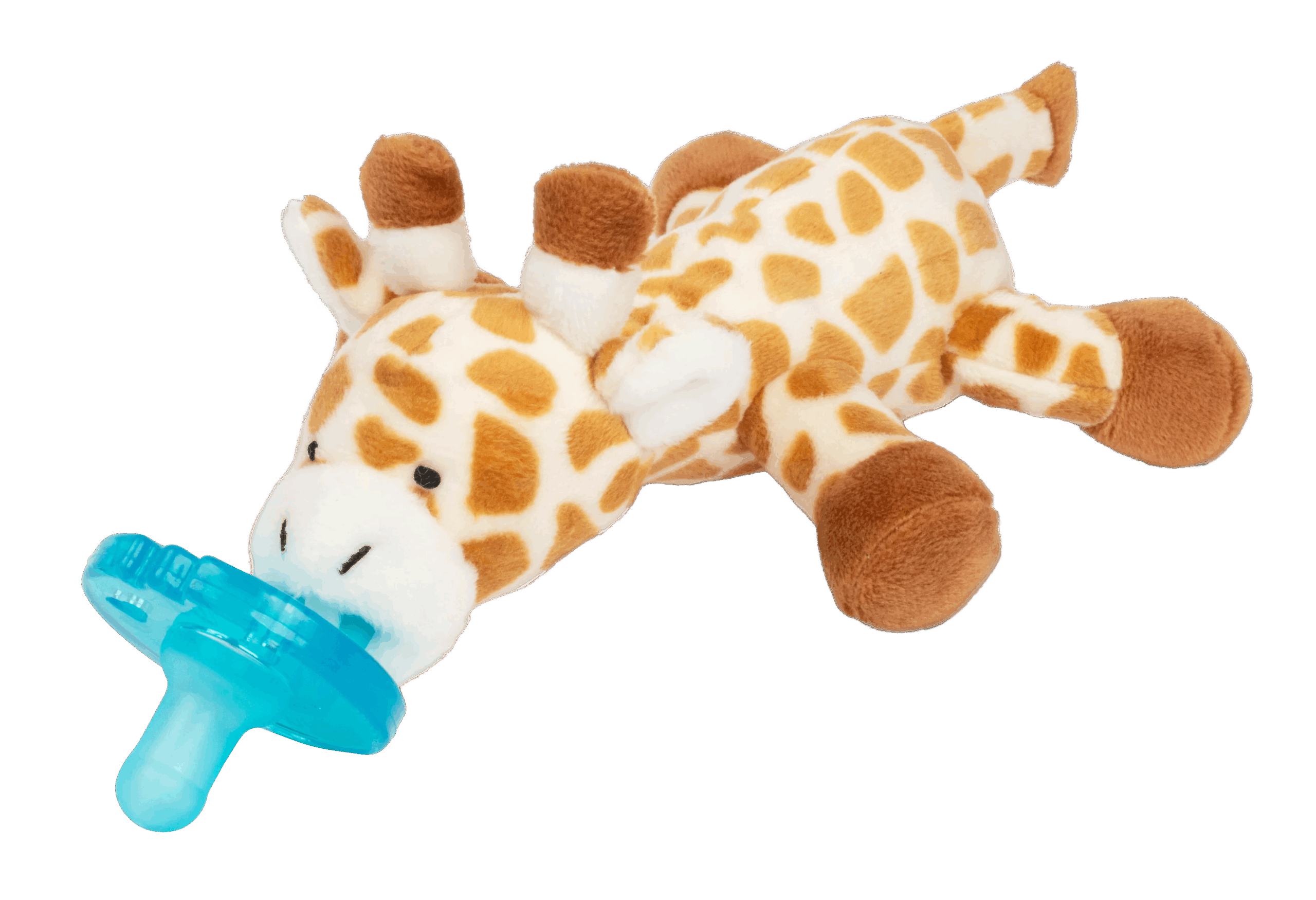 The unique style of WubbaNub allows it to remain close and easily positioned by baby offering twice the soothing. Matching Giraffe Lovey also available.