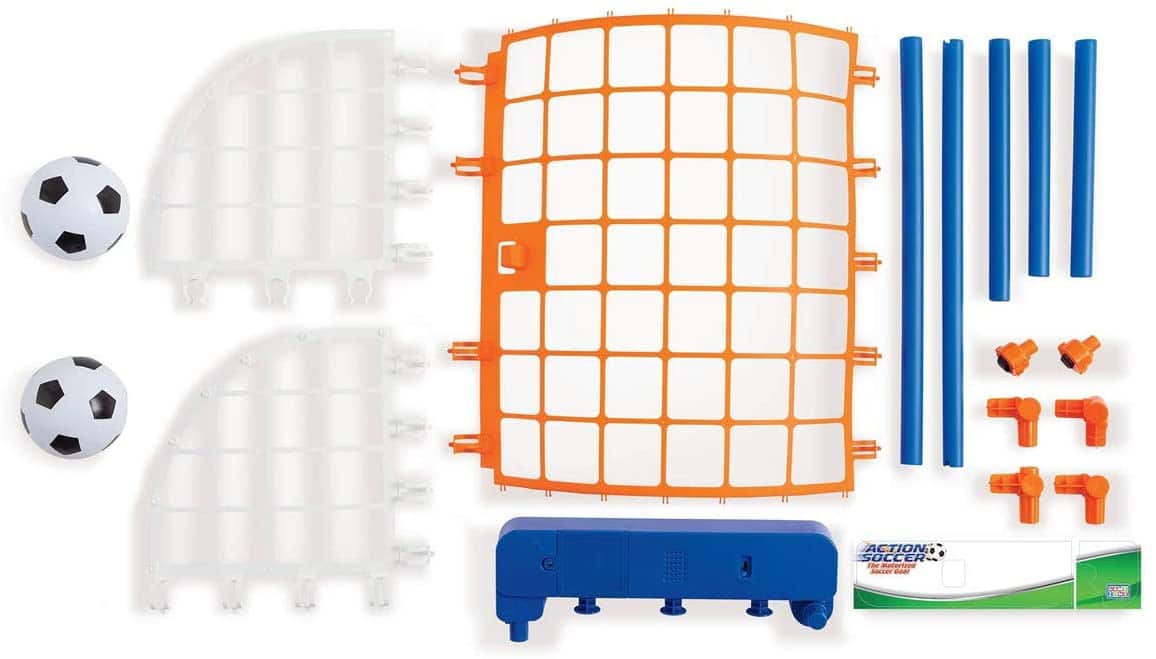 It's Action Soccer: The Motorized Soccer Goal! This mini 20.5 x 11.8 soccer net moves around on its own while young athletes practice their timing and aim. Includes two speeds for both beginner and advanced players! 4 AA batteries required, not included.