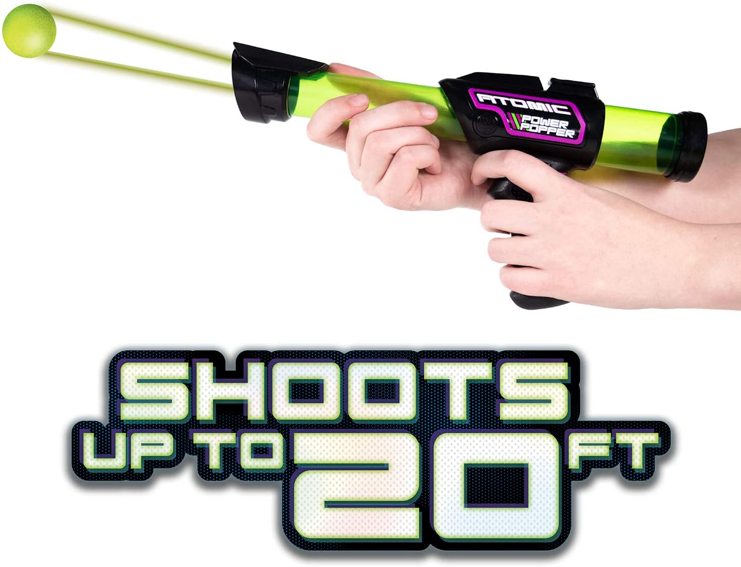 Atomic Power Popper 6X blaster gun shoots up to 18 Foam Balls! Rapid Fire Ball Blaster Includes 6 soft foam ammo balls and can shoot up to 20 feet! Pump to shoot! Pump action launches the balls faster! Great for indoor and outdoor play, and makes a great fun gift! By Hog Wild Toys. For ages 4 and up. Works with all Hog Wild Popper refill balls (sold separately).