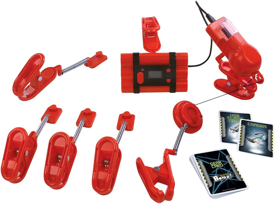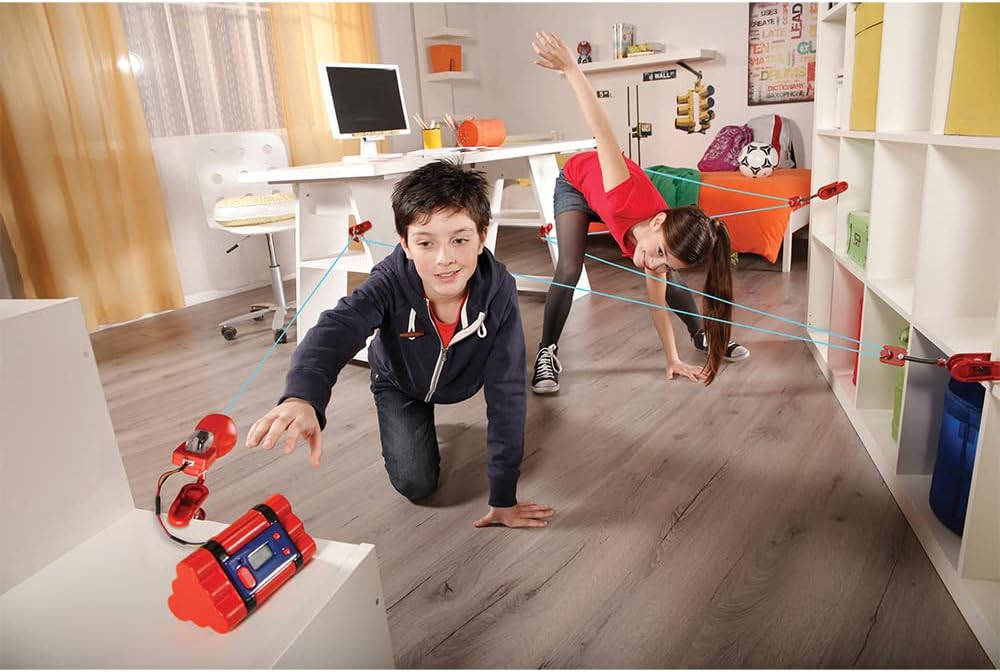 Chrono Bomb is a super secret spy mission where kids use the included clamps and long, 37-ft. string to create a “laser” field to crawl through. At the end of the maze is the bomb, counting down…tick, tick, tick! So, you have to hurry, carefully, and make it to the end to defuse the bomb and be the hero! Play over and over again, building new courses each time or trying to beat your or your friend’s time!