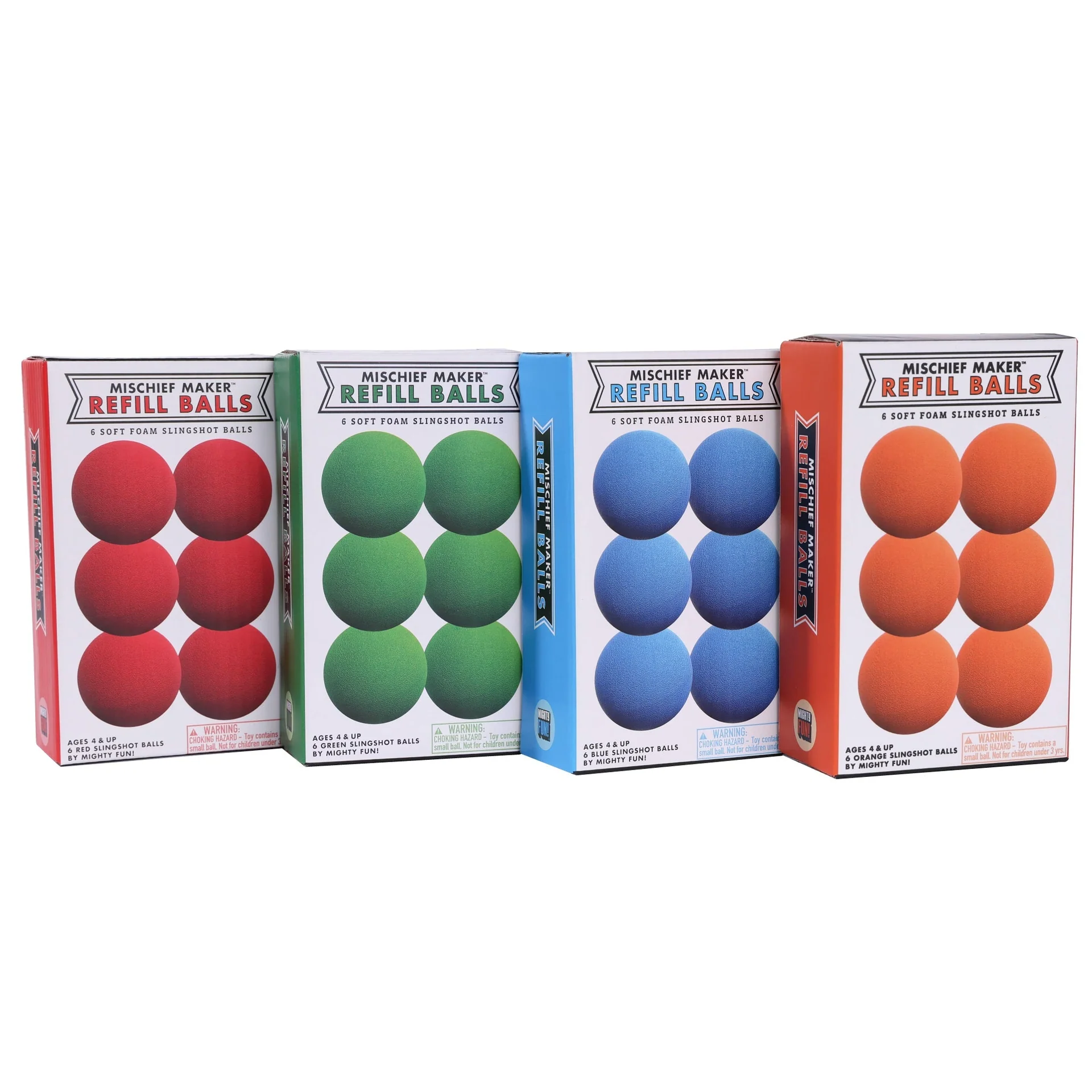 Keep the fun going with Mischief Maker® Refill Balls. This 6-pack of soft foam balls is made for safe, kid-powered play and works with all Mischief Maker® Wooden Slingshots.