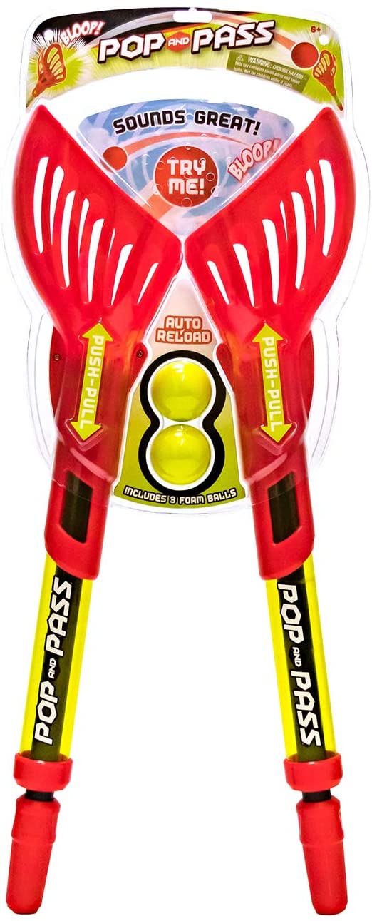 Hog Wild is reinventing the classic catch and pass game of the past... And the new name of the game is POP and pass! Pop and pass is an exciting “no-throw” game of catch. Players use the lacrosse-style stick launchers to pass the soft foam balls back and forth. It's easy to load and launch. Just pull the handle back to load, then quickly push forward. When the ball goes flying there's an incredible “bloop” noise that adds to the fun! The basket scoop design makes it easy to catch the balls as they fly through the air. There are so many ways to play: pass it to your friend to play catch back and forth or blast it straight up for single player action. See how high and far you can launch the ball. How many times can you pass to each other before you miss? With more than one set, The open-ended play lets kids easily create their own action-packed games. Pop and pass provides endless outdoor fun for the family in the backyard, at the beach, at the park, at a picnic or on a campout - get your set today!