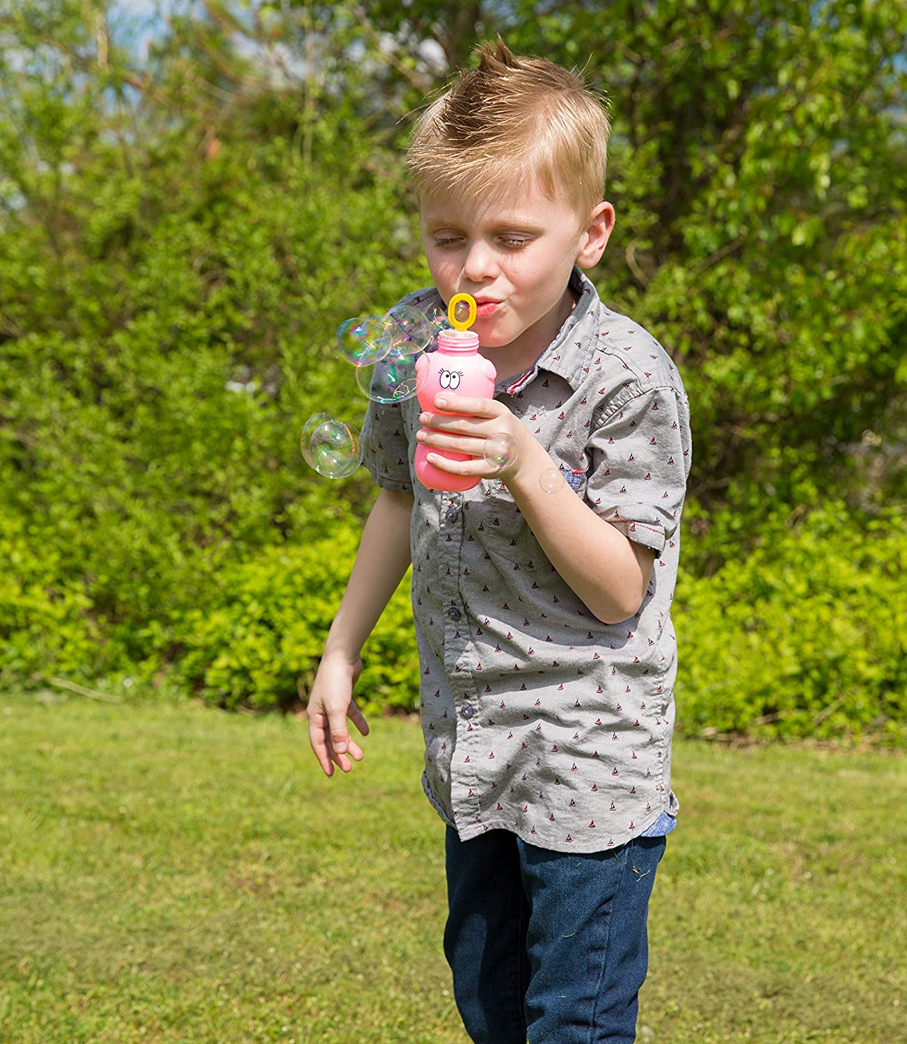 From fun with the kids to weddings, bubbles are a classic pastime that everyone can enjoy. Safe and entertaining kids and adults alike will love Uncle Bubble's products from their incredible solution to their awe-inspiring bubble wands and toys. Bubble takes immense pride in their bubble solution. Designed to resist what the other solutions cannot, they're less likely to pop on their own; because there's nothing worse than going to blow a bubble, and it pops while it's still in the wand. Experience the World of Bubbles with innovative bubble products that expand the imagination. Uncle Bubble products are internationally known as the leading maker of premium grade bubble solution and toys that are fun for everyone interested in bubbles. Uncle Bubble Toys bring consumers many ways of making and playing with bubbles. Imagine making huge bubbles bigger than your entire body, or, blowing bubbles inside other bubbles. We have also developed bubbles that don't pop when you catch them in your hand. Package contains (1) Uncle Bubble Pop Up Bubble Friends Bubble Bottle with Wand. Comes in assorted characters and colors. Recommended for children ages 3 years and older. Do not drink. Avoid eye contact.