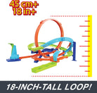 Double down on the racing and stunting with the Hot Wheels Action Loop Cyclone Challenge Track Set! This dynamic set features two ways to play: slam launch into the boomerang loops for repeat racing or set it to jump and score to rack up points. Both options send cars through epic loops and turns that make for high-speed excitement. The set collapses for easy and convenient storage, and 1 Hot Wheels 1:64 scale car is included. Colors and decorations may vary.