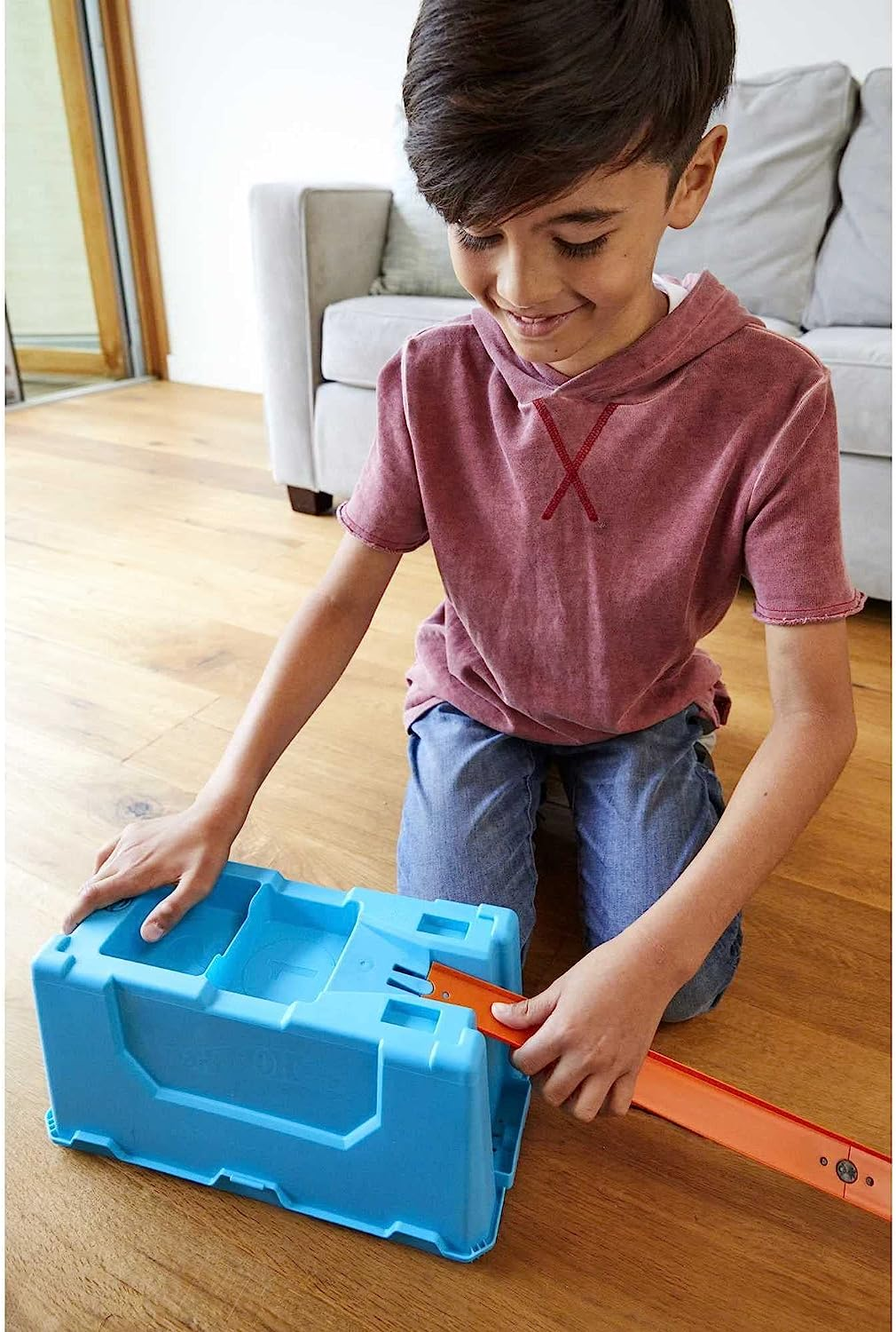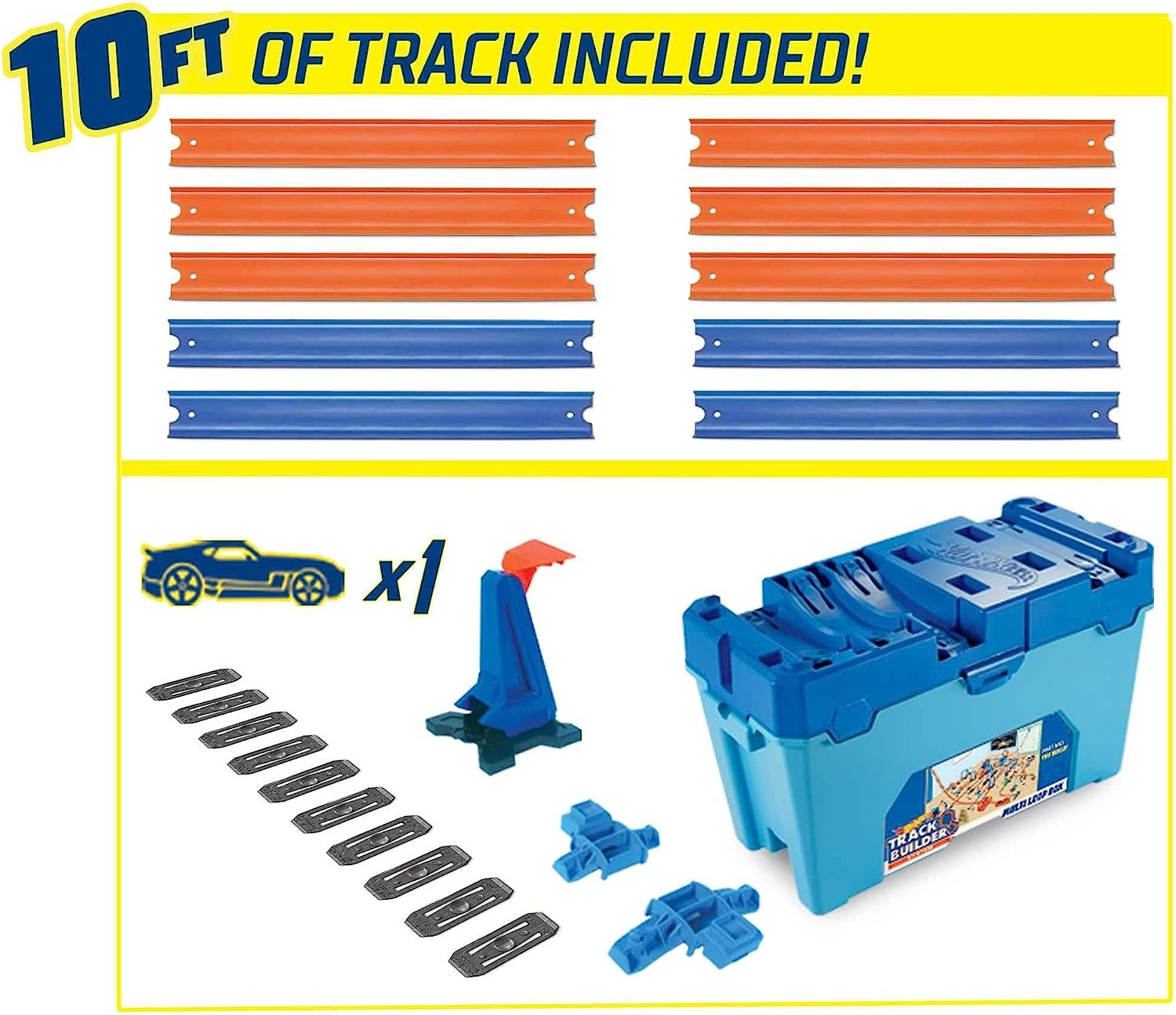 Included in the bin are 10 feet of track, connectors, launcher, and a Hot Wheels vehicle.
