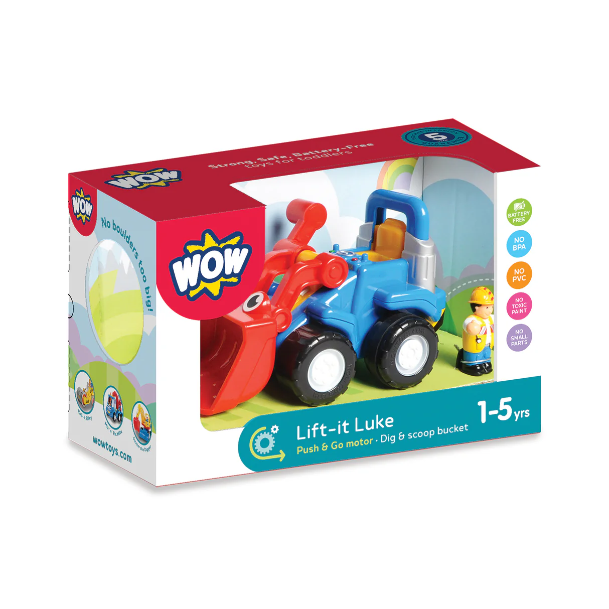 Make your way around the construction site with your very own motorized digger from WOW Toys. Lift-it Luke is a super strong and lightweight digger ready for any construction task. Pull Luke’s handle to lift the bucket and push him around the building site. Luke’s friendly construction figure fits nicely in the driver’s seat, and Luke is ready and set to finish any job!