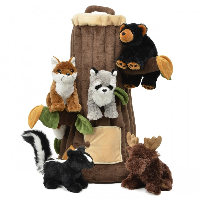 30" Grande Tree House with Black Bear, Fox, Raccoon, Skunk and Moose stuffed animals