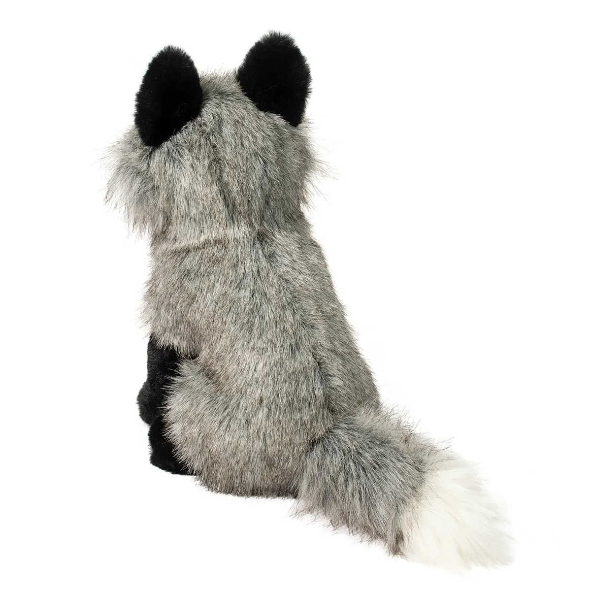 Sprinting nimbly through the woods, Artemis the Silver Fox stuffed animal becomes a quicksilver blur! Fluffy plush fur lends our elegant vixen a realistic appearance. Her lively expression is accentuated by triangular ears that stand alert atop her head. Richly colored eyes shine from Artemis’ black masked face, while dark stockings on each of her legs lend further distinction. From her seated pose, Artemis keeps tabs on her surroundings and you can bet that not a thing gets past her! Bring home this monochrome variation of the Red Fox species and Artemis the plush Silver Fox will delight and enchant!