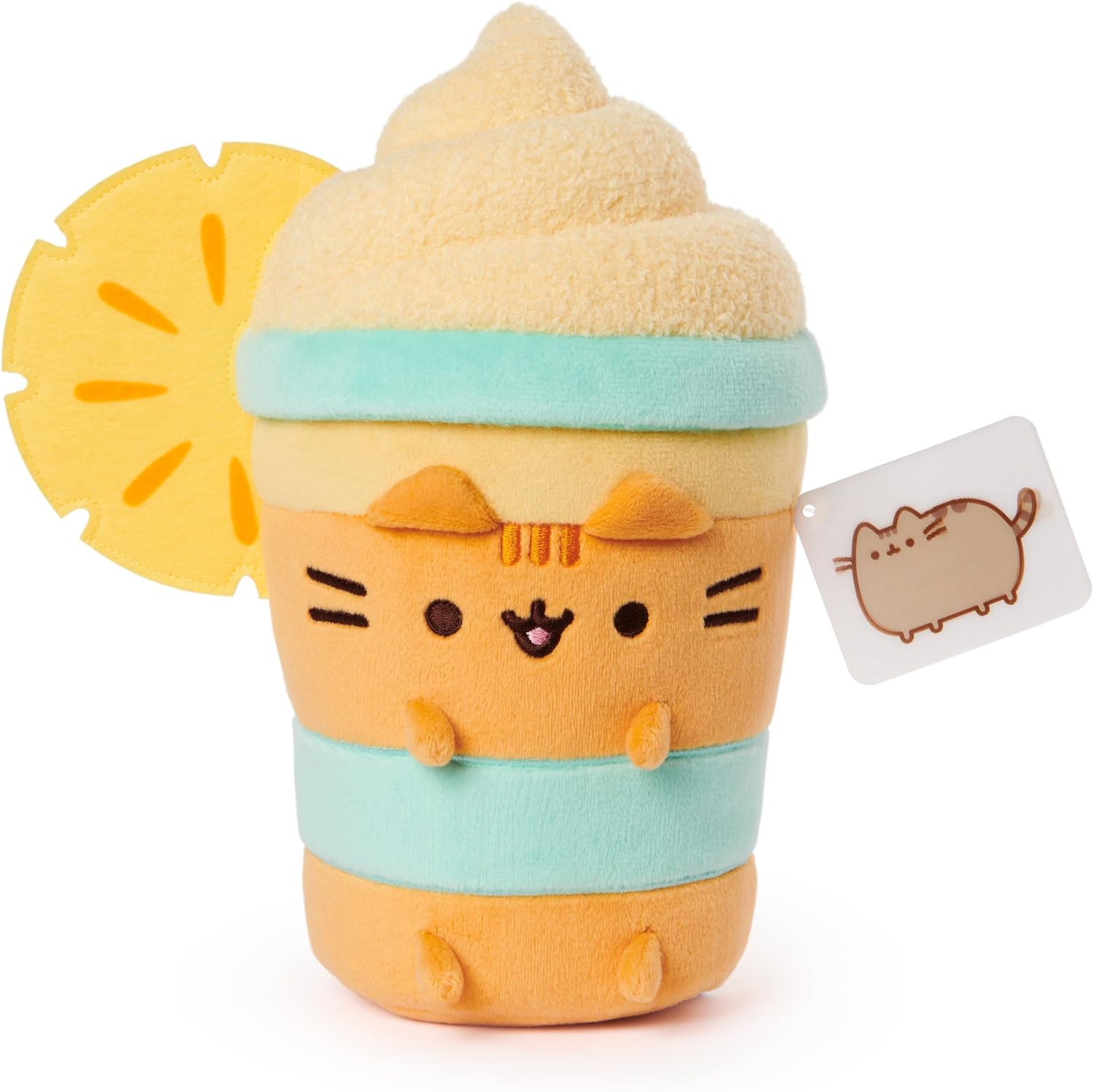 Just when you thought she couldn’t get any sweeter, Pusheen is here keeping cool as a refreshing, icy-cold pineapple float! This large, playful 9.5” plush features the tubby tabby in homage to that oh-so-popular frozen pineapple treat. Pusheen sits in an orange, yellow, and blue striped cup with embroidered details while a delicious swirl of yellow textured plush rests on top of her head. The soft-serve swirl is accented by a sunny yellow pineapple slice garnish, making this a true treat for collectors of all tastes. All of her facial features and details are embroidered, including Pusheen’s adorable smile, whiskers, and tail stripes. Each Pusheen plush is designed with premium soft, surface-washable plush and ships in a protective poly bag. Appropriate for ages 8 and up. Pusheen is the sweet, lazy, plump tabby cat who loves to bring smiles and laughter to people worldwide in her popular webcomic, which is followed by over 10 million social media fans. Our collection of GUND Pusheen plushies brings this lovable kitty and her adventures with Sloth, Stormy, Pip, Cheek, and more to your home, desk, or wherever you might want a smile. GUND Pusheen stuffed animals make adorable home decor and are the perfect gifts for cat lovers, Pusheen fans, and collectors of kawaii plush.