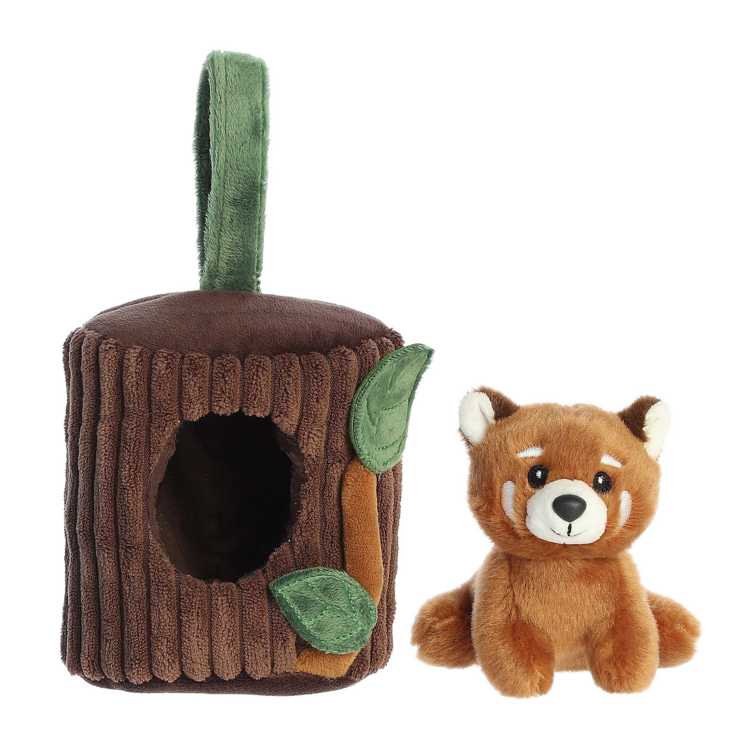 Cozy Corners of Nature: The Hideouts Aurora Plush Series Dive into the whimsical world of Hideouts by Aurora, where plushies find sanctuary in their own cozy corners. From the vibrant Coral Hideouts where Clown Fish and Blue Tang Fish play, to the Kelp Forests where Otter and Blacktip Reef Shark frolic, and the serene Tree Hideouts where Red Panda and Sloth relax, each setting captures the essence of nature's retreats. Crafted with attention to detail, the Hideouts collection offers a delightful playtime experience, weaving stories of comfort, friendship, and adventure in every HideOut plush toy. Hideouts Red Panda Plush with Tree Trunk Home - Cuddly Forest Companion Meet the Hideouts Red Panda Plush, the cutest resident of its plush tree trunk home. This endearing plush set invites children to the tranquil forests where the red panda spends its days. The plush itself is a burst of color with its rich red and white fur, detailed with attentive craftsmanship to capture the essence of this beloved animal. The cozy tree trunk provides a perfect hideout, promoting interactive and imaginative play. The soft, high-quality materials are chosen for longevity and child safety, ensuring this plush companion can withstand hours of play. It's a wonderful gift for wildlife enthusiasts and a great way to encourage love and knowledge of nature's creatures. Adopt a Hideouts Red Panda Plush Today - Bring the Forest Adventure Home!: This plush is approx. 4" x 5" x 5.5" in size. Made from high-quality materials for a soft, fluffy touch. Learn about an animal's habitat and where they like to live! Comes with both the red panda plush and its tree trunk hide-out! Free from bean pellets, suitable for all ages