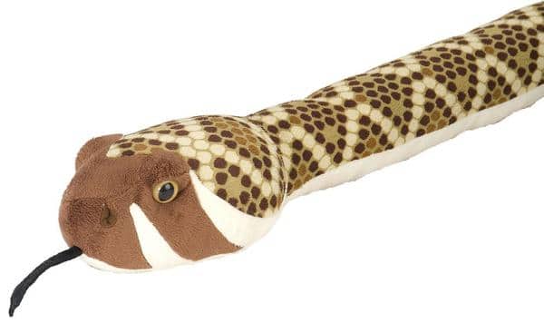 Snuggly (not slimy) and playful (not poisonous), this lifesize stuffed Western Diamondback will turn anyone into a snake lover! This 54-inch snake is covered in fuzzy brown fur that makes a scaly diamond pattern down his back, making him realistic and lovable.