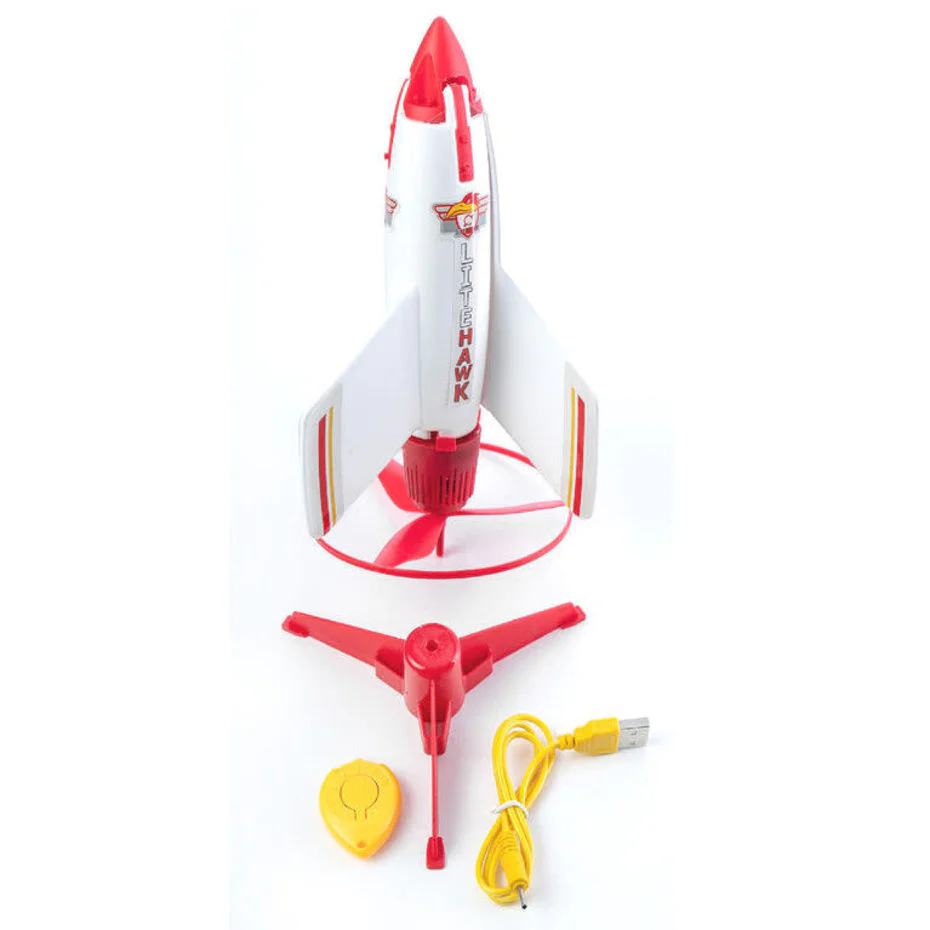 Includes charger, launch stand, and a remote to launch the rocket from a distance
