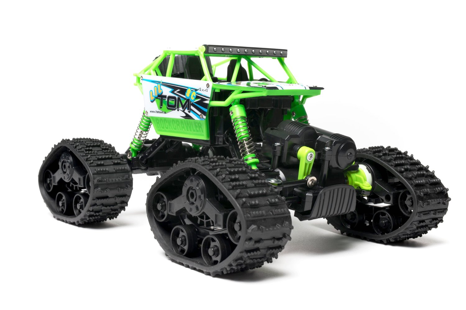 Tear through the snow with SC’s all new custom designed tracked wheels! LiteHawk LIL’ TOM SC is ready for adventure. Originally designed as a Rock Crawler, it’s high Travel Suspension can easily navigate through rough terrain. Twin motor setup delivers robust power to the front and rear axles - all controlled by the included 2.4 Ghz Controller.