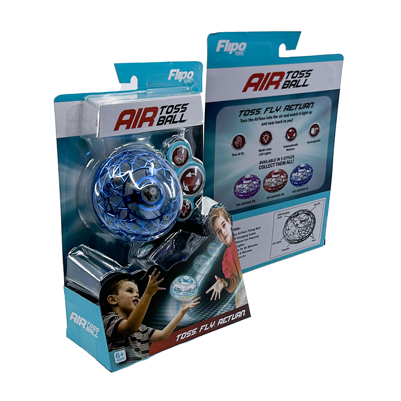 Get ready for the next big thing in challenging and exciting fun– the NEW Flipo Air Toss - the revolutionary tricked-out “ball” that comes right back! Hold the Air Toss at the proper angle before tossing to choose between the boomerang function, fly to the target, or any moves your imagination can dream up. The self-propelled system uses a motor and enclosed propeller to guide the Air Toss back to its starting point or to any target. The flashing LED lights make it a blast to play with at night! Super-lightweight at approximately 3.2 ounces and available in red, blue, and purple styles, the Air Toss is safe for children ages 6 and up. Say goodbye to constantly replacing batteries - the Air Toss comes with a handy integrated rechargeable battery and a USB charging cable - one full charge provides tons of fun. Don't let your children miss out on the toy that's taking neighborhoods by storm - every throw becomes an adventure, every catch a win. Watch as it inspires imagination, encourages outdoor activity, and improves hand-eye coordination.