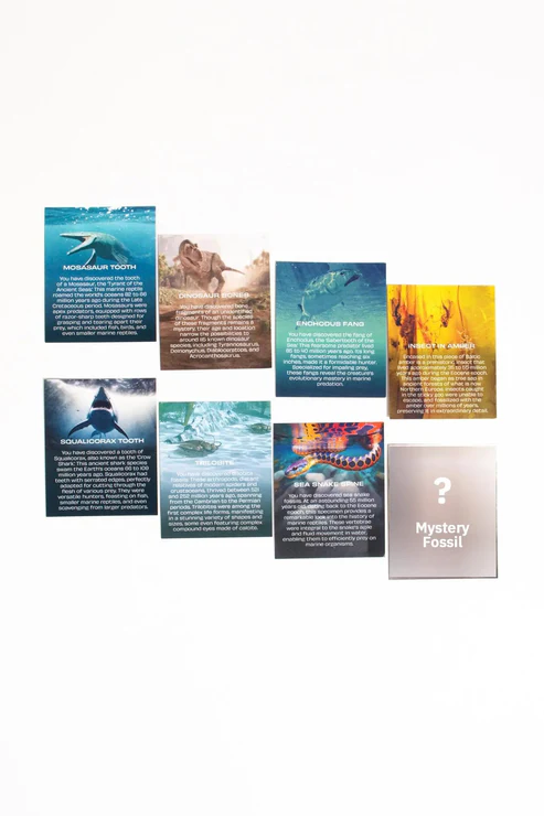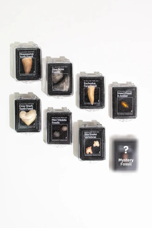 Introducing our Prehistoric Fossil Blind Bags. Each blind bag in this series includes one of eight authentic prehistoric fossils. These fossils range from 40 million to 380 million years old and have been hand-selected by our paleontology experts. Every fossil includes an information card about the creature, a certificate of authenticity, and a protective display capsule.