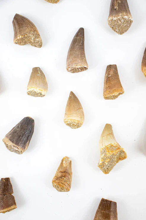 The tooth of a Mosasaur, the ‘Tyrant of the Ancient Seas.’ This marine reptile roamed the world’s oceans 82 to 66 million years ago during the Late Cretaceous period. Mosasaurs were apex predators, equipped with rows of razor-sharp teeth designed for grasping and tearing apart their prey, which included fish, birds, and even smaller marine reptiles.
