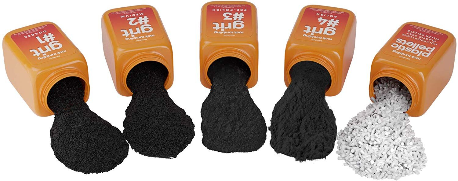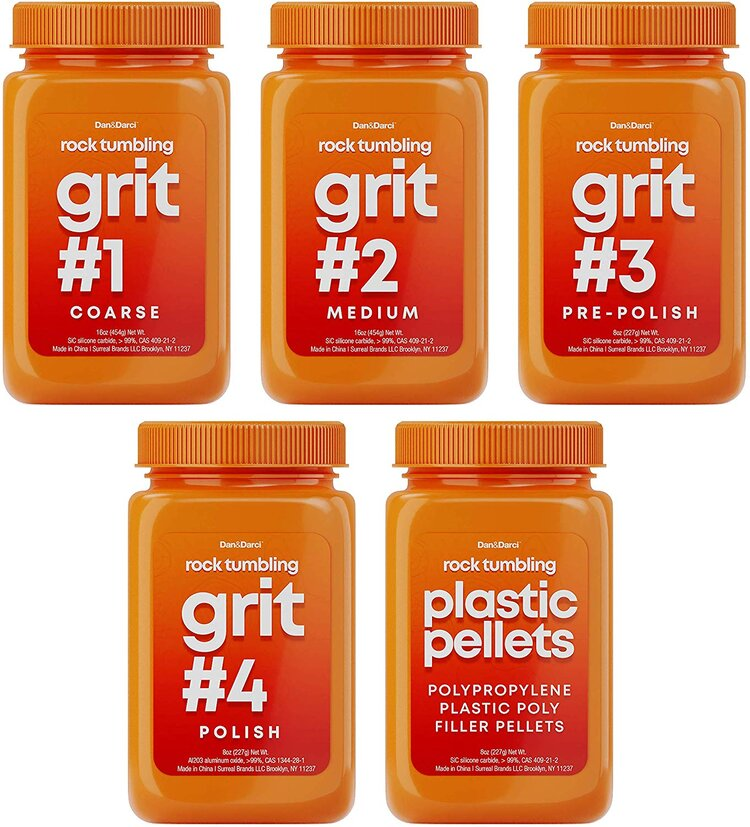 Dan&Darci Rock Tumbler Refill - 3.5 Pounds Tumbling Grits Medium + Poly Plastic Pellets - Rock Tumbling Media - Polish for Any Brand Tumbler - Stone Polisher COMPLETE ROCK TUMBLING MEDIUM KIT: 3.5 lbs. 4-step grit set and poly plastic pellets, to polish any rock. Packaged in easy-to-use-and-store bottles. INCLUDES: Step #1 Coarse Grit (1 lb.), Step #2 Medium Grit (1 lb.), Step #3 Pre-polish Grit (1/2 lb.), Step #4 Grit (1/2 lb), Polypropylene Plastic Poly Filler Pellets (1/2 lb.), Instruction Guide. COMPATIBLE WITH ALL ROCK TUMBLERS: Can be used in tumblers from any brand: Dan&Darci, Elenco, Lortone, National Geographic, Smithsonian, Thumler and more. EASY TO USE: Includes a clear instruction guide on how to use the grits and plastic pellets.