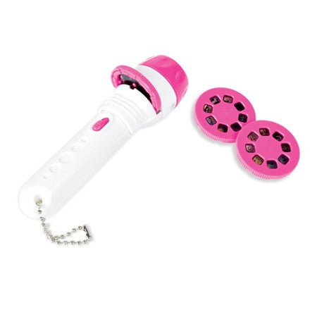 Magical pictures of unicorns illuminated right before your eyes! Mini projector with 3 discs for a total of 24 images to view! Or use without the discs as a great little flashlight! Batteries included.