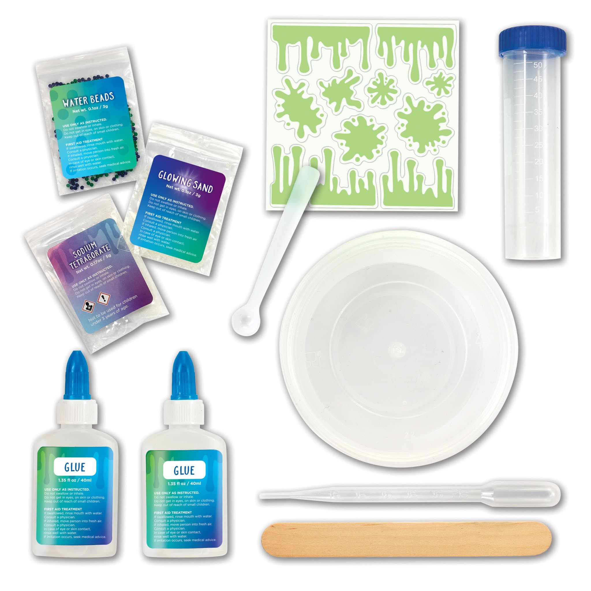 Includes everything you need to make glowing sensory slime! Glowing sand and water beads add a fun, unique, sensory texture. Parents will love the handy storage container and kids will love decorating it with the glow-in-the-dark stickers. Ages: 6 to 96 Contents Include: 80ml clear glue, 5g sodium tetraborate, 3g water beads, 3g glow in the dark sand, pipette, storage container, measuring scoop, test tube, mixing stick