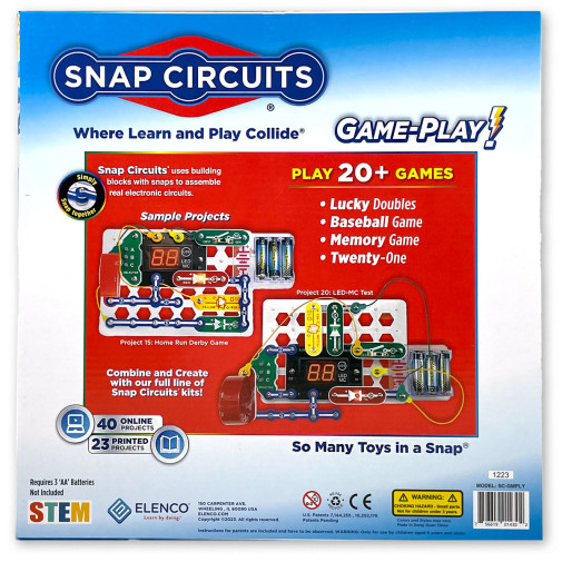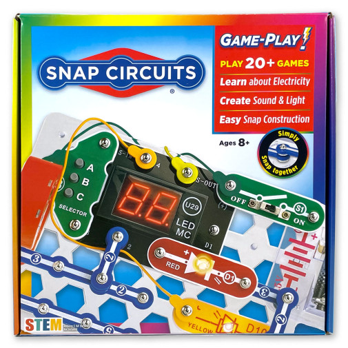 Make dozens of electronic gadgets that power light and sound, all from one box! Build custom circuits that power 20+ electronic games and 60+ total projects for hours of Game Play. Recommended for ages 8 years and older.