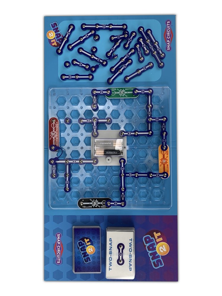 SNAP 2 IT is a family board game that integrates traditional board game play with the value of teaching foundational STEM principles of electricity. 1-4 players have so much fun, they don't even know they are learning. Play summary: a battery is placed in the middle of the playing grid, each player chooses their light - the first player to create a path of SNAP CIRCUITS parts between their light and the battery, wins the game! SNAP 2 IT and let's play! Recommended for ages 7 years and older.