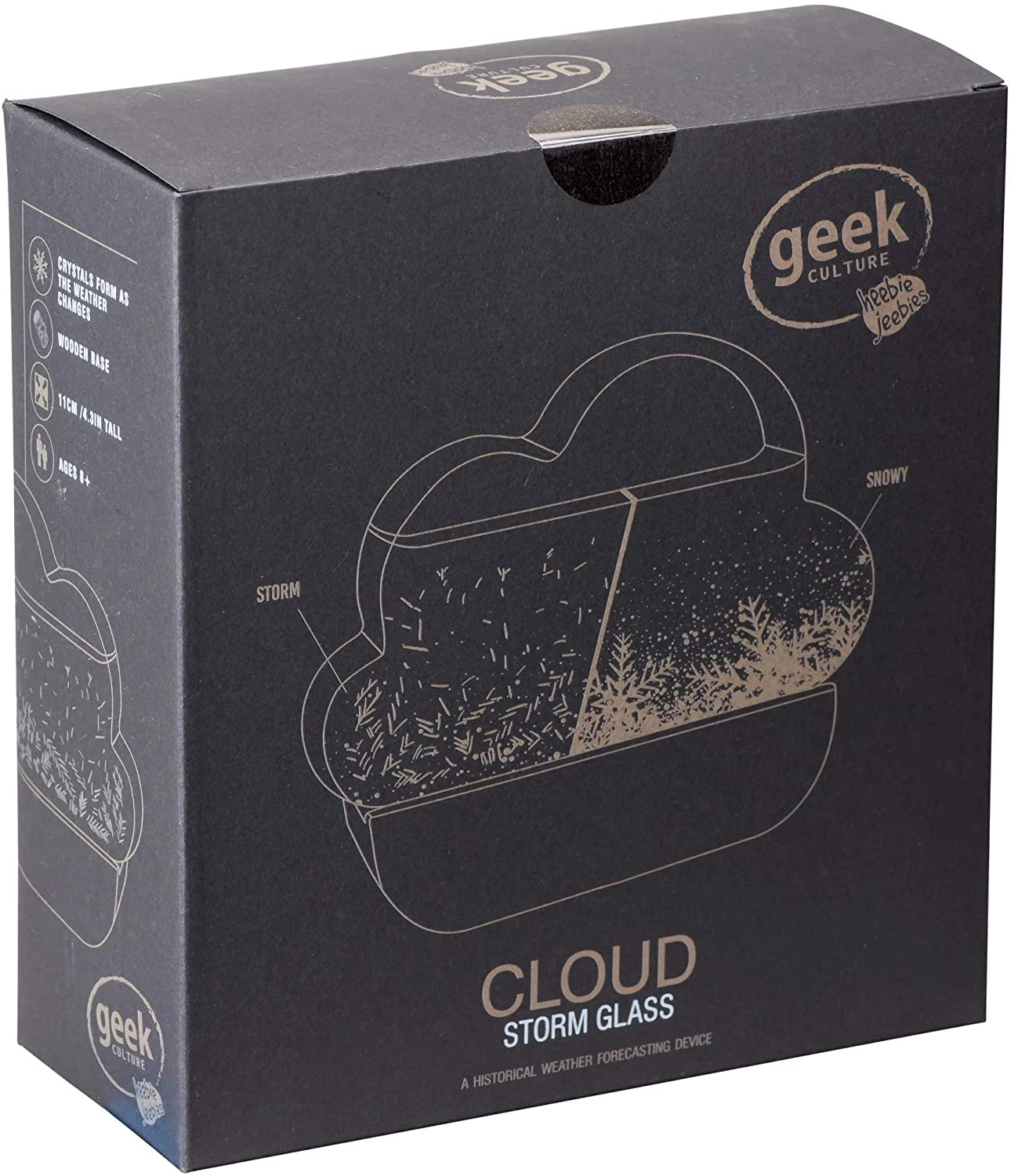 The Storm Glass Cloud is a fun curiosity for the lovers of history, meteorology or science. Learn to discern the weather forecast with the crystals, stars and threads that form in this cloud shaped glass on its simple wooden stand.