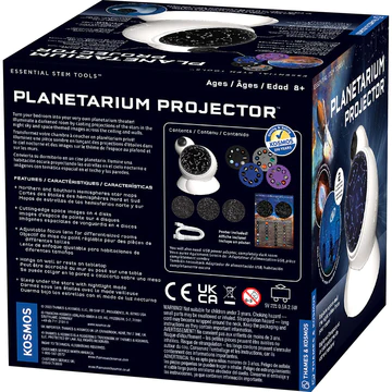 Turn your bedroom into your very own planetarium theater! Illuminate a darkened room by casting projections of the stars in the night sky and space-themed images across the ceiling and walls. This home planetarium is actually two projectors in one. The first is a rotating star map dome that projects astronomically accurate maps of the stars; star maps for both the northern and southern hemispheres are included. The second projects space-related images, including all eight planets, eight human-made space objects like rockets and satellites, and eight extragalactic phenomena like nebula and galaxies. Use nightlight mode to automatically shut off the projector after 15, 30, or 60 minutes. The compact, space-saving design can be placed on a flat surface or hung on a wall. Includes color educational poster and instruction sheet.
