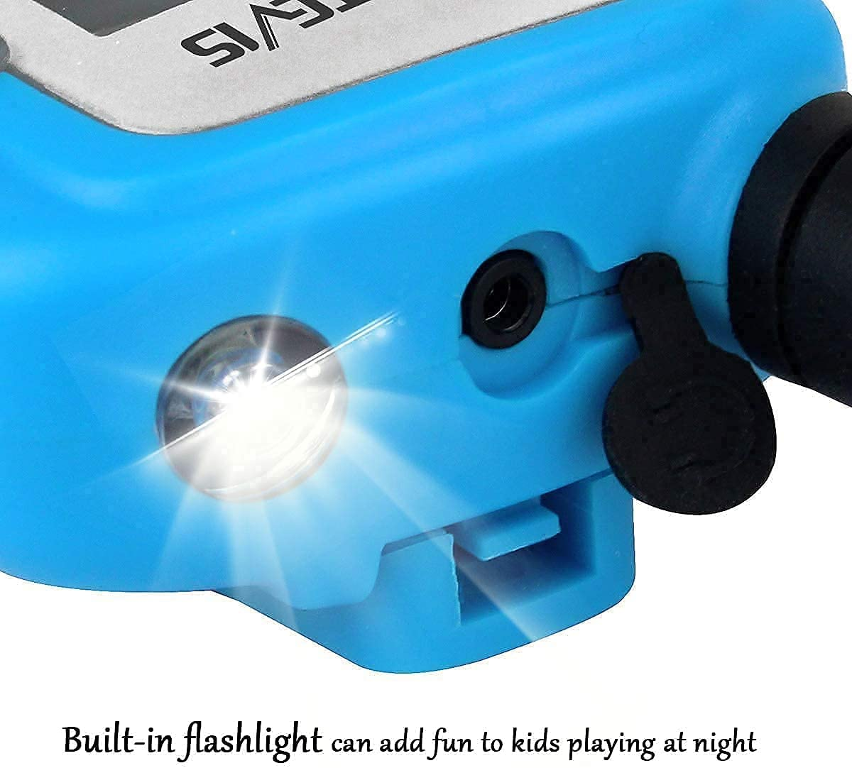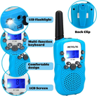 Keep in contact with your friends with this Walkie Talkie. Infinte number of pairs, range up to 1 mile, requires 4 AAA batteries not included. Made of plastic.